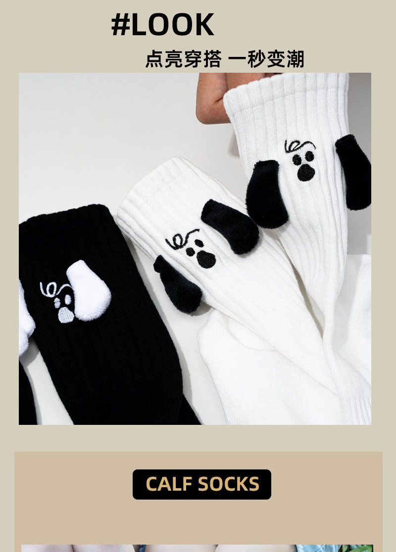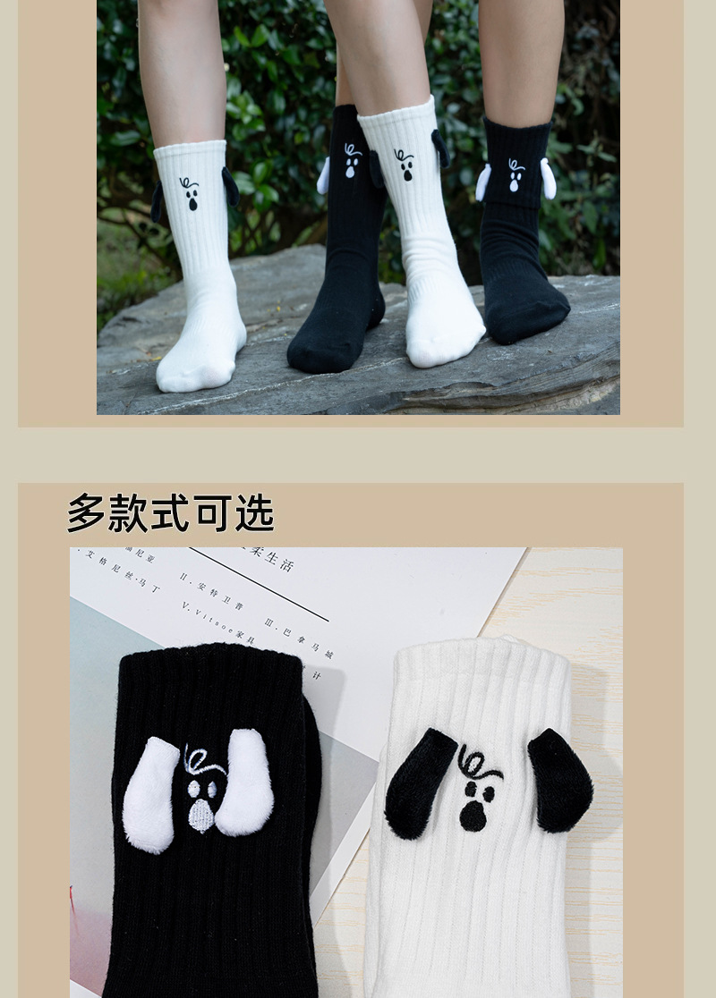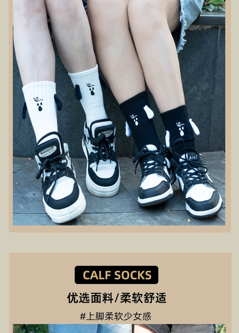 【有氧棉柔!2双装狗狗立体袜子】透气百搭,点亮穿搭,一秒变潮!耳朵网红搞怪卡通棉女袜可爱中筒袜