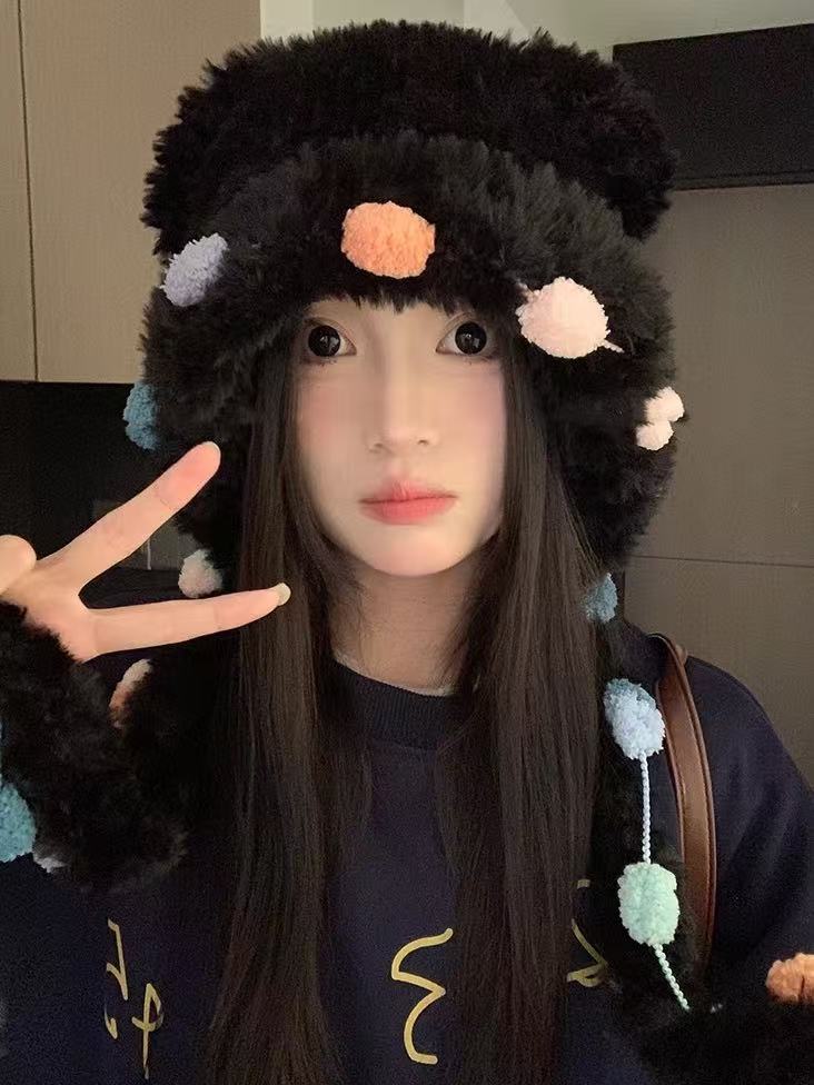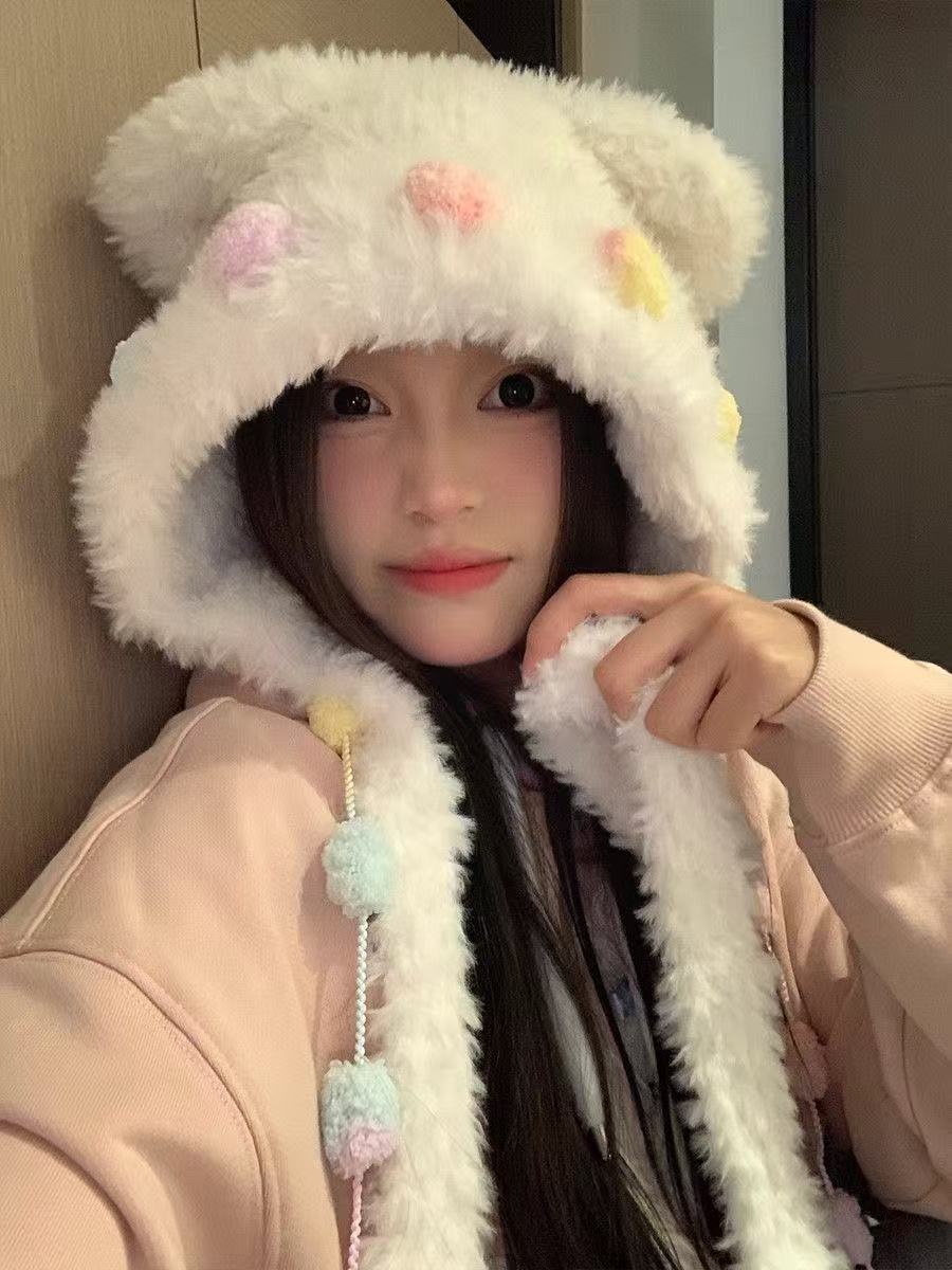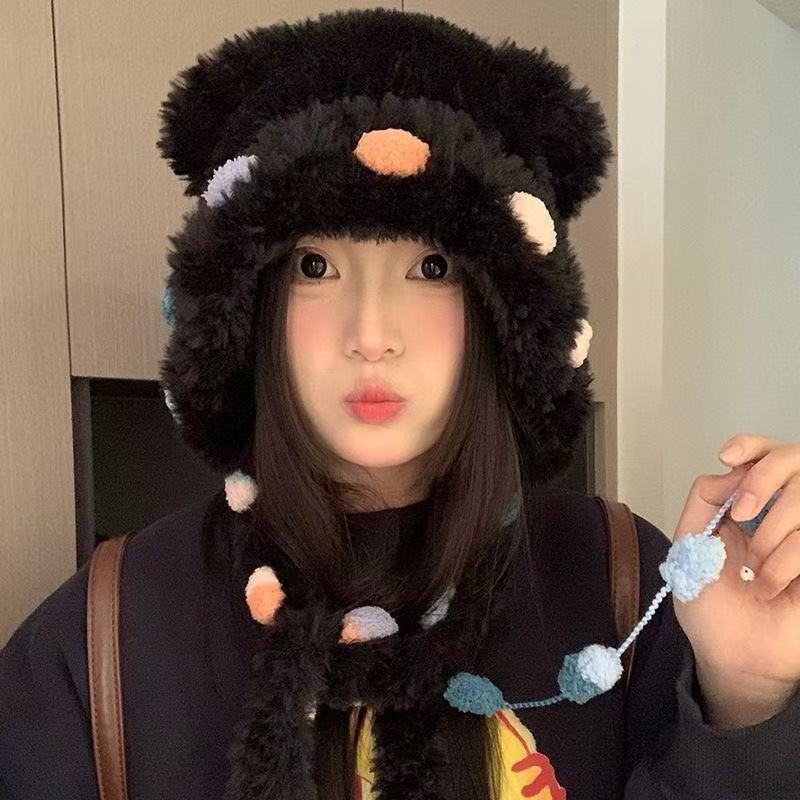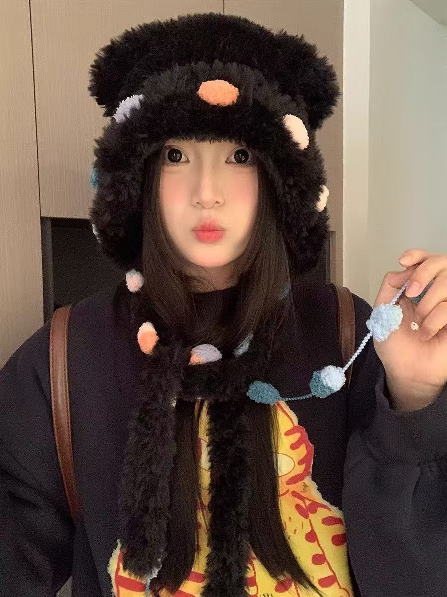 【冬日萌趣❗️小熊耳朵毛线帽】秋冬出街凹造型神器,拼色加厚款,保暖护耳又显脸小,毛线帽子女秋冬季保暖护耳显脸雷锋帽子QQ
