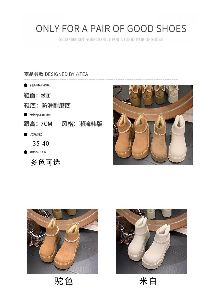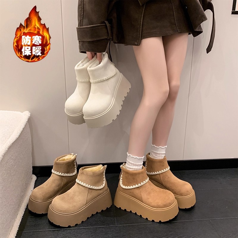 【复古百搭❗️勃肯加绒短靴】舒适的脚感久穿不累,鞋面纹路细腻,软弹脚感垫脚吸汗都不带怕,舒适稳固后跟设计,2025秋冬季新款白色厚底增高雪地靴QQ