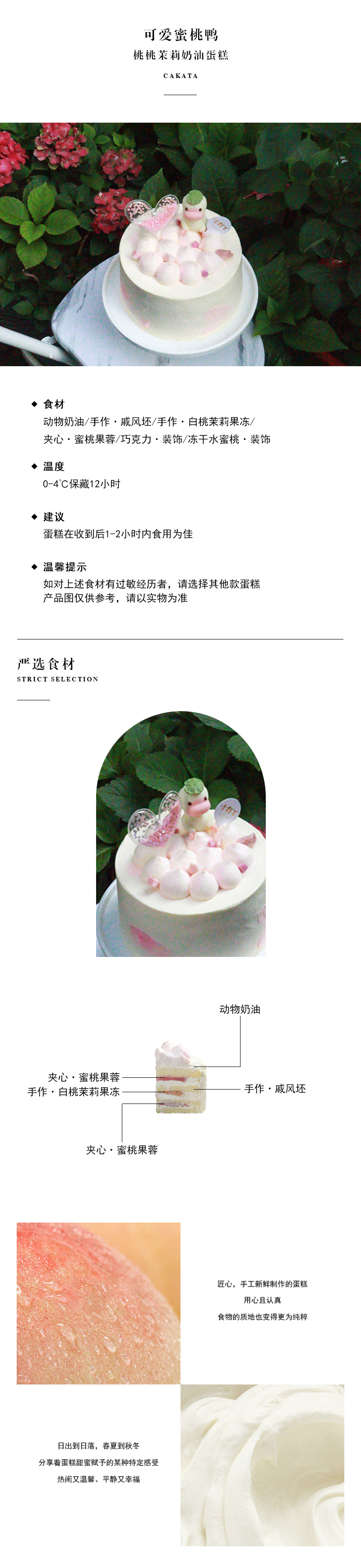 可爱蜜桃鸭·桃桃茉莉奶油蛋糕(可备注少糖)