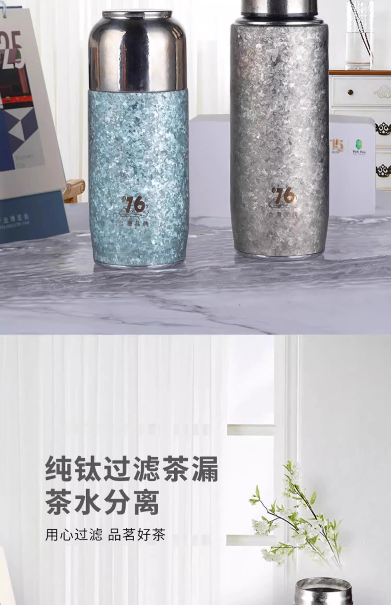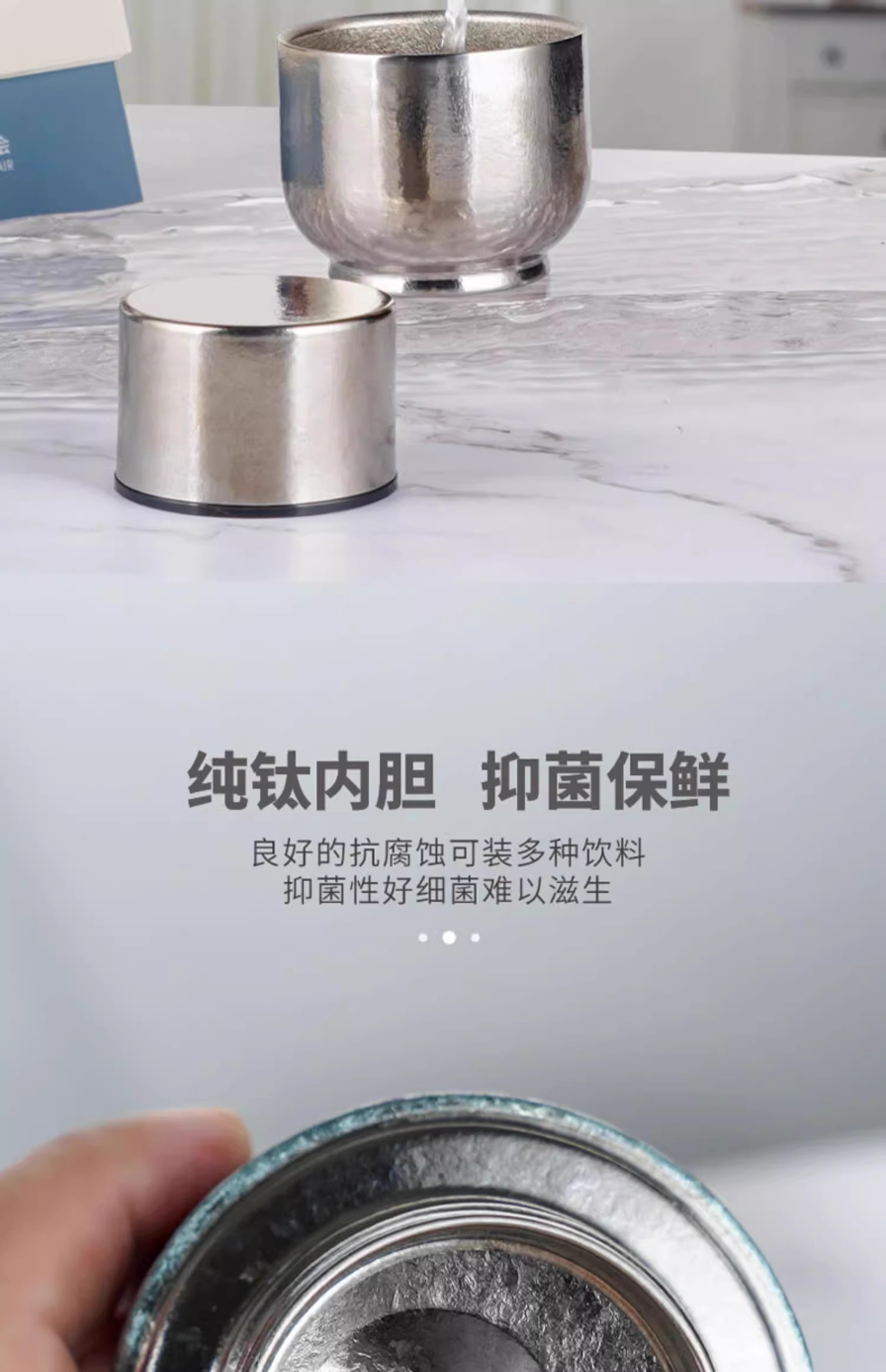 76双层纯钛保温杯茶水分离泡茶杯男女士高端钛杯大容量水杯子