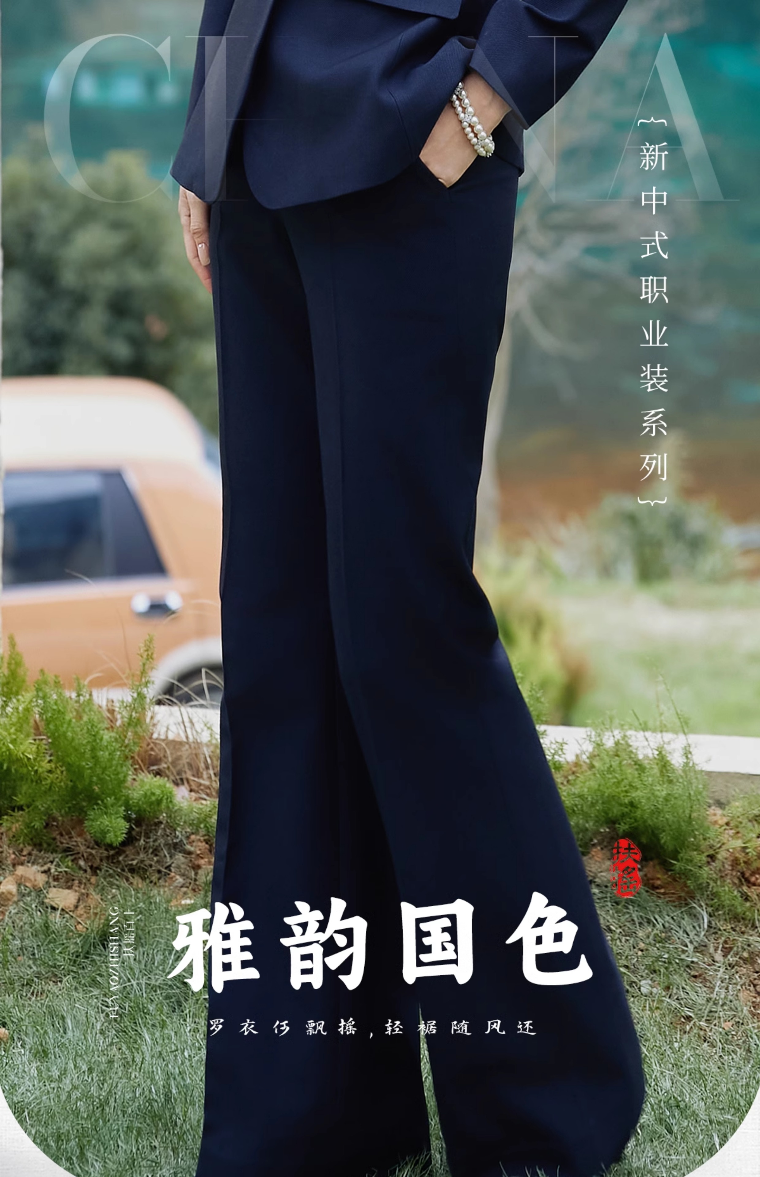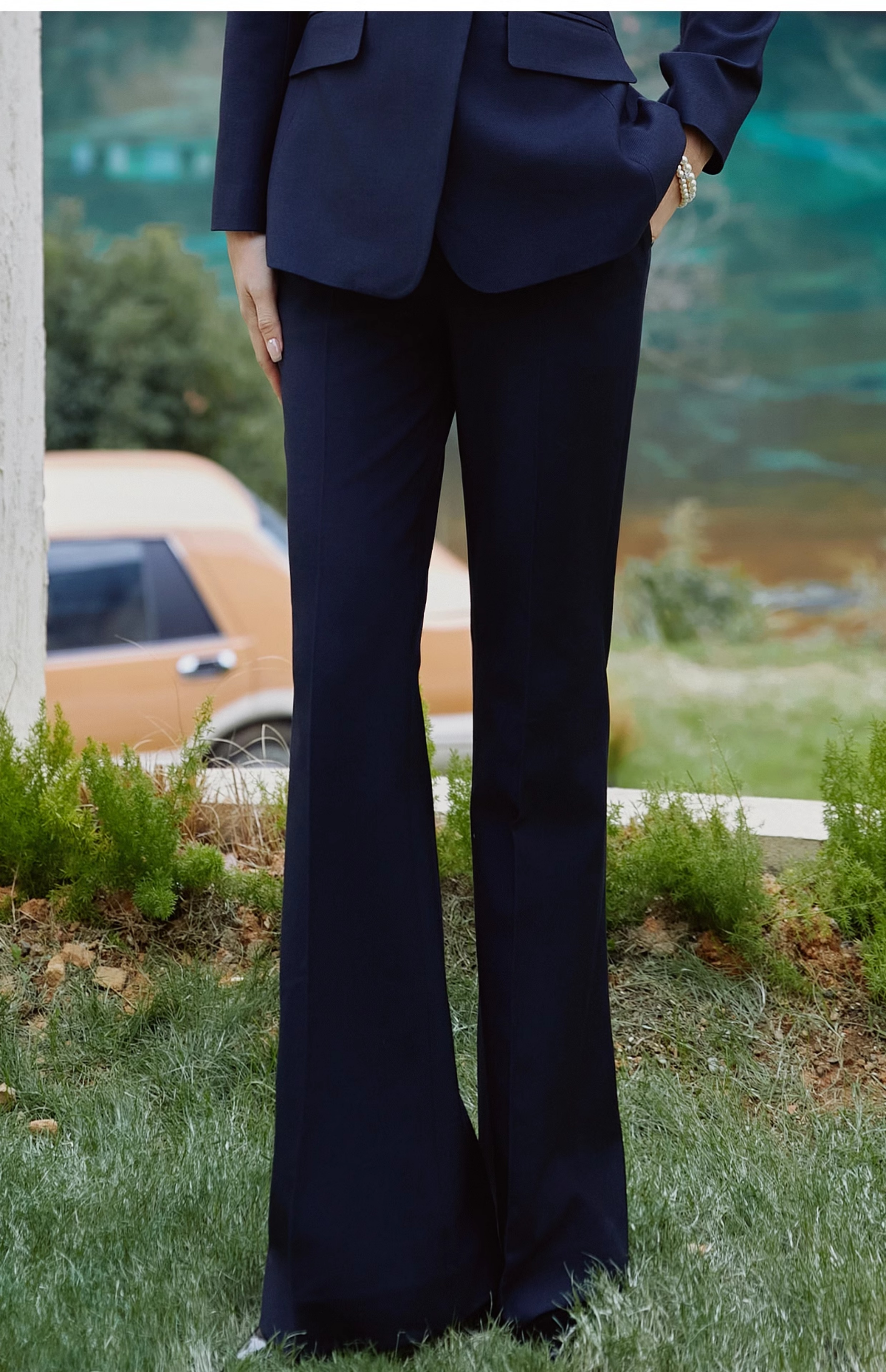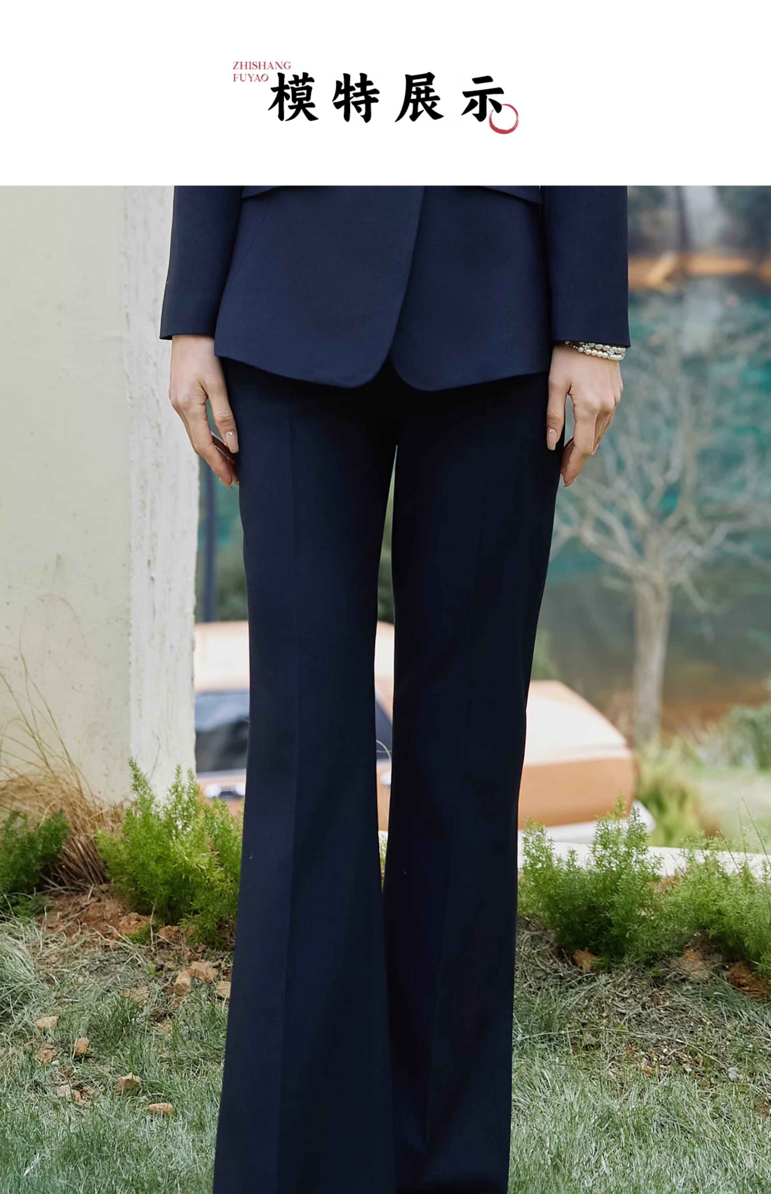 FUYAO扶摇 藏青色西装裤女2025新款高腰修身微喇裤职场通勤正装裤