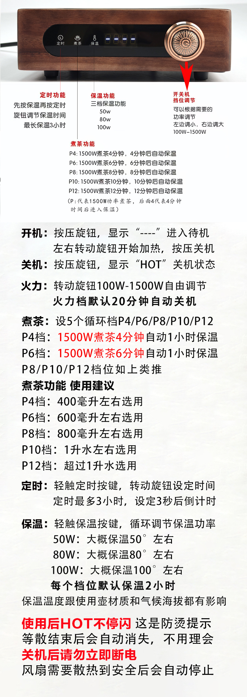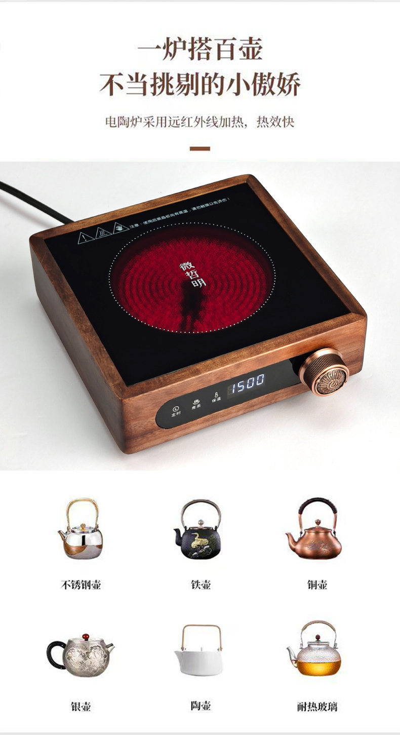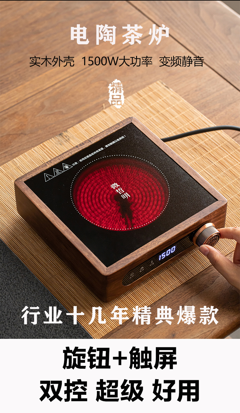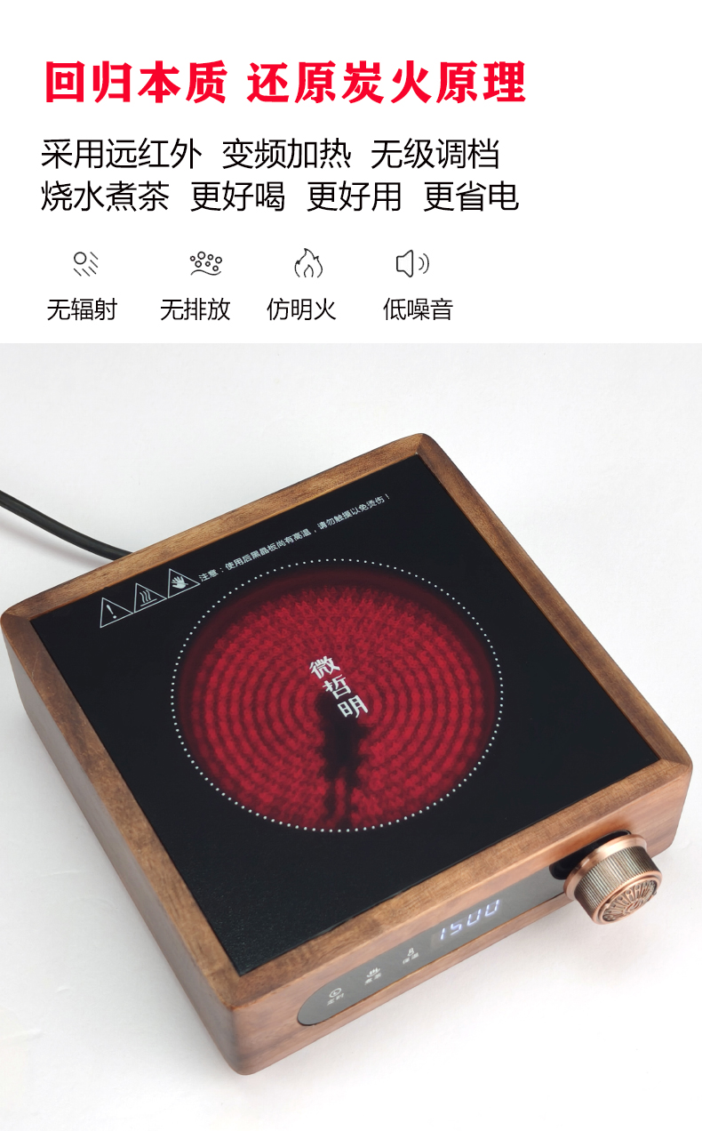 微哲明丨实木四方炉 茶道电陶炉 1500W