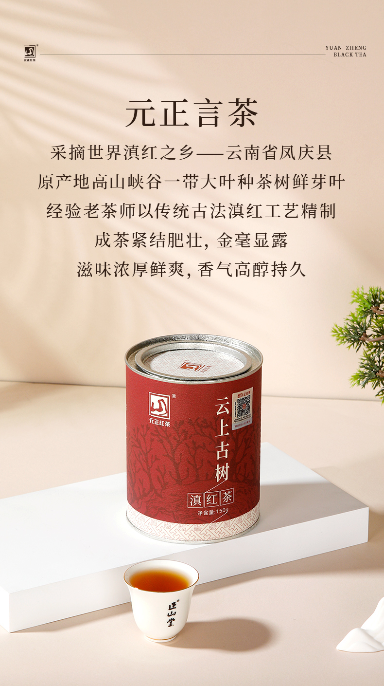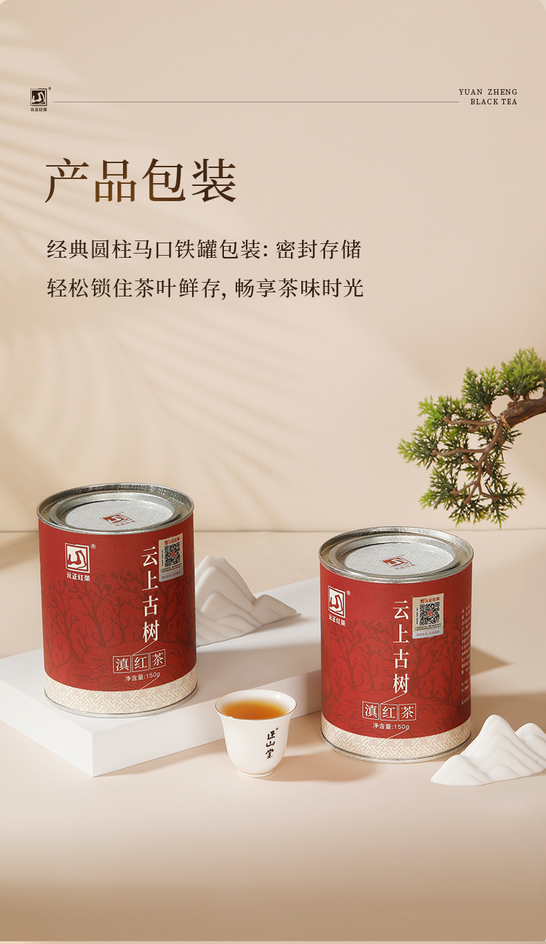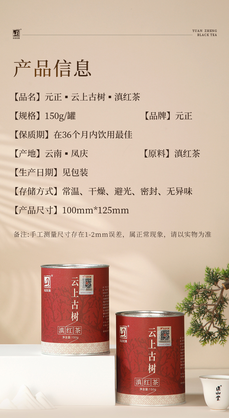 元正 滇红云上古树 红茶特级云南凤庆大叶种茶叶罐装150g