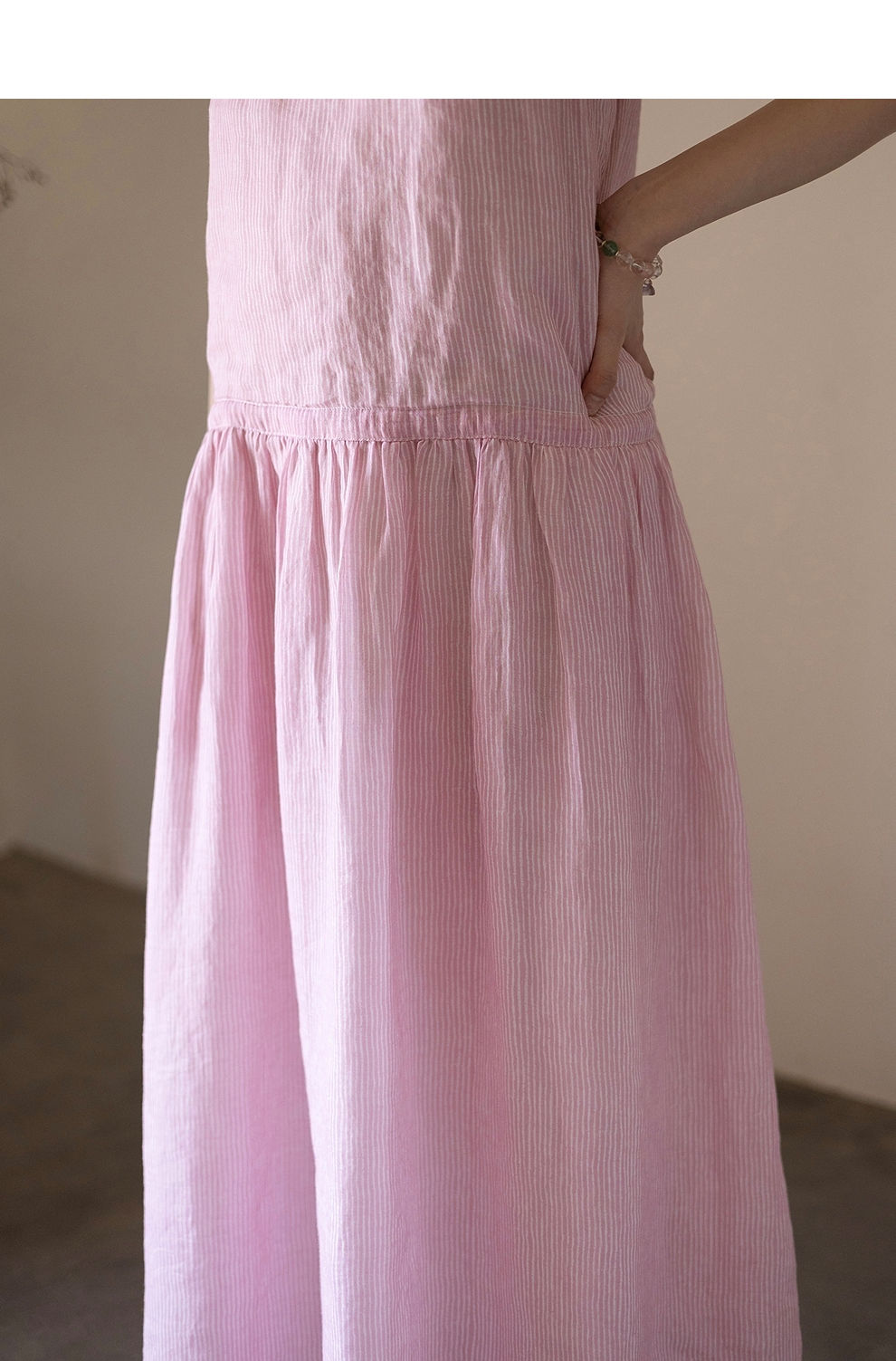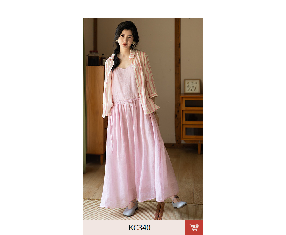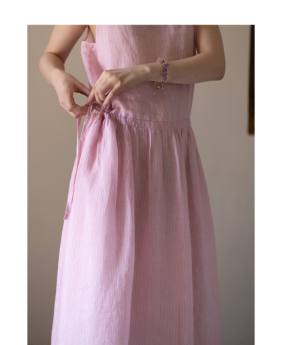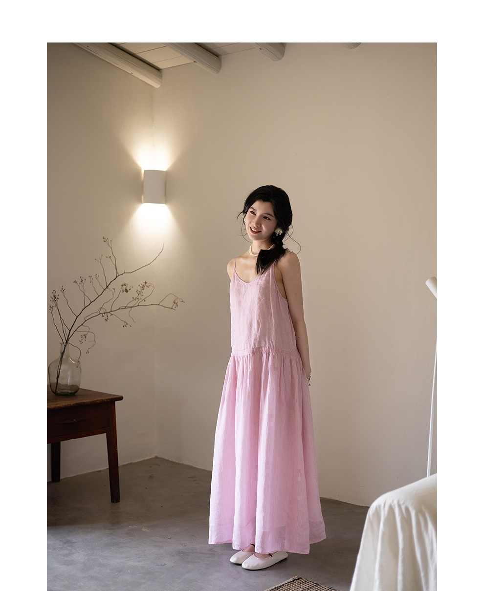 绽放334朵/【海街日记】苎麻印花可调节肩带腰部抽绳大摆吊带裙女