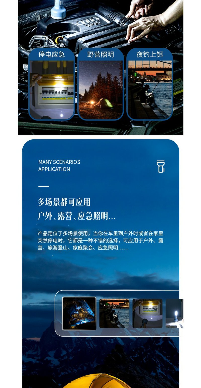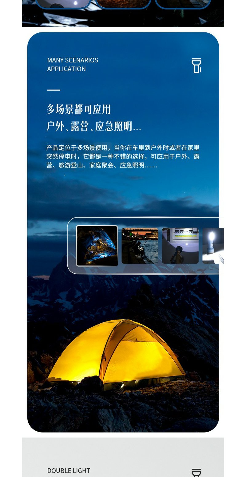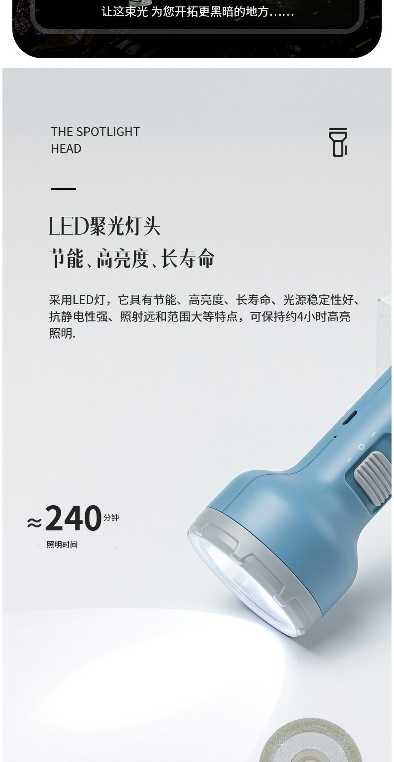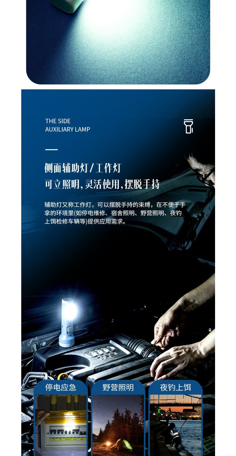 得力3662A充电式LED强光手电筒双照明设计