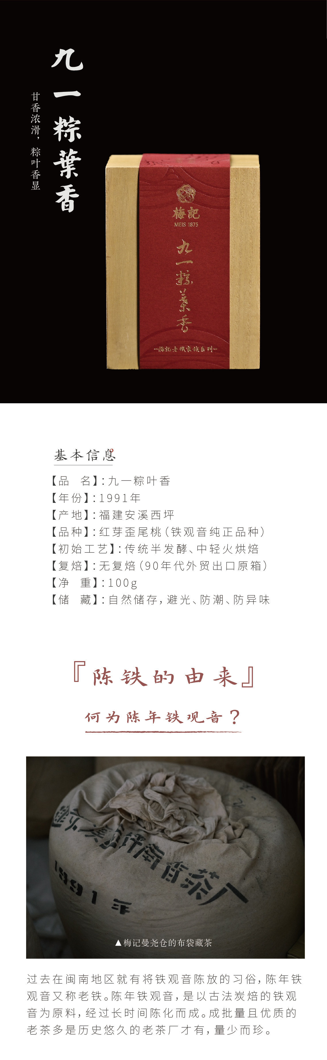 梅记1991年粽叶香老铁 100g 宜品宜藏 陈年铁观音老乌龙茶