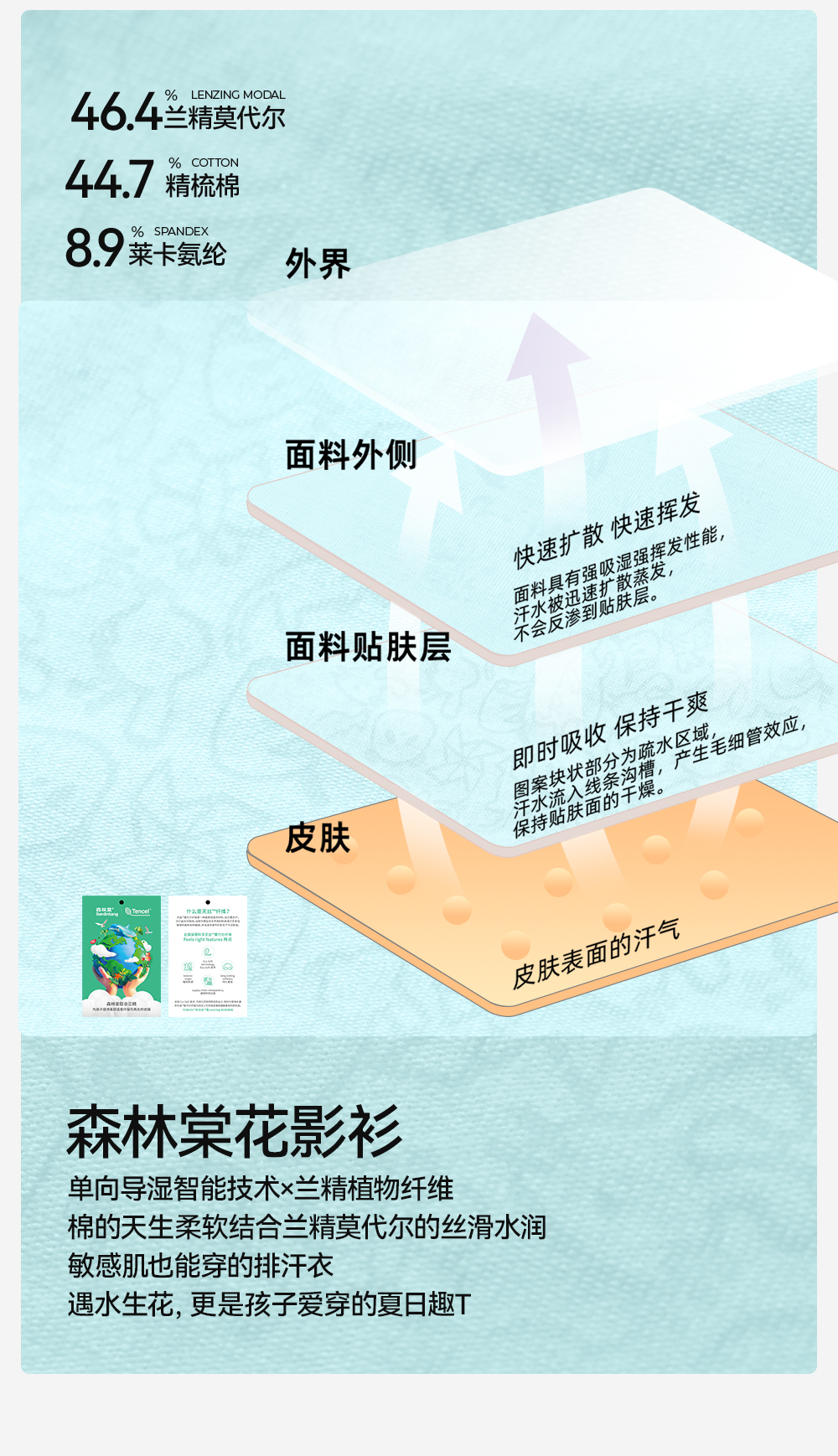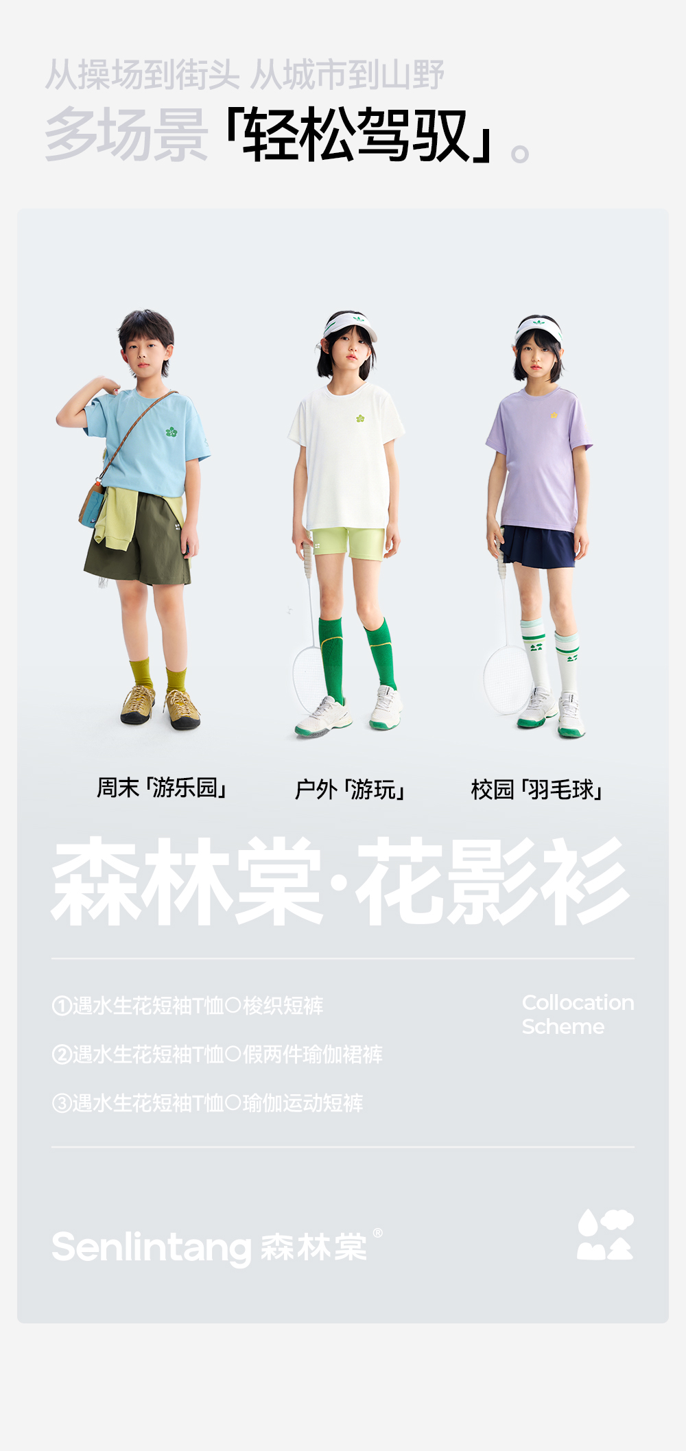 【云雨山林花影衫】森林棠26夏款吸湿排汗遇水生花儿童短袖T恤40162536