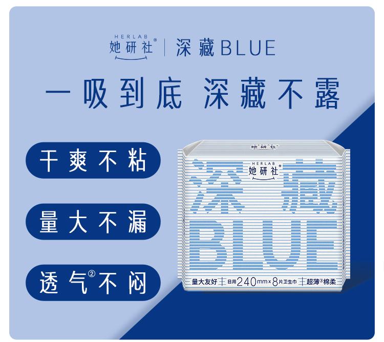 她研社 新疆棉深藏BLUE卫生巾日夜组合装超薄干爽姨妈巾卫生棉护垫