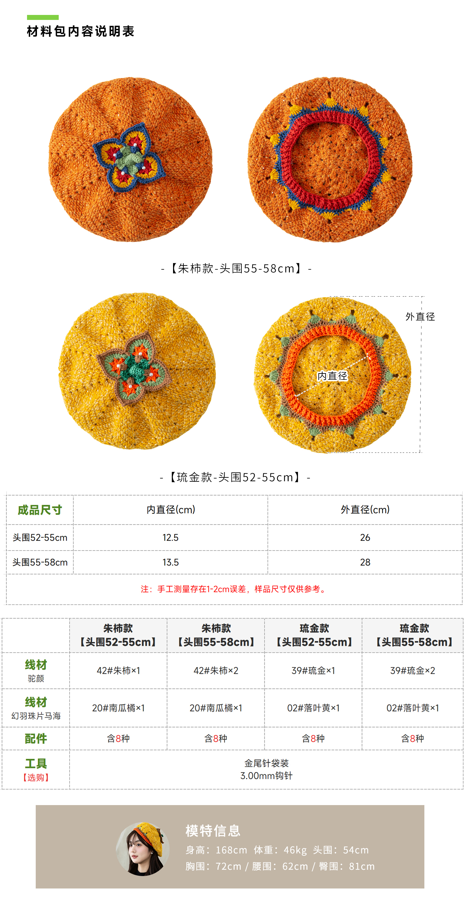 苏苏姐家柿果贝雷帽手工diy编织帽子钩针毛线团材料包