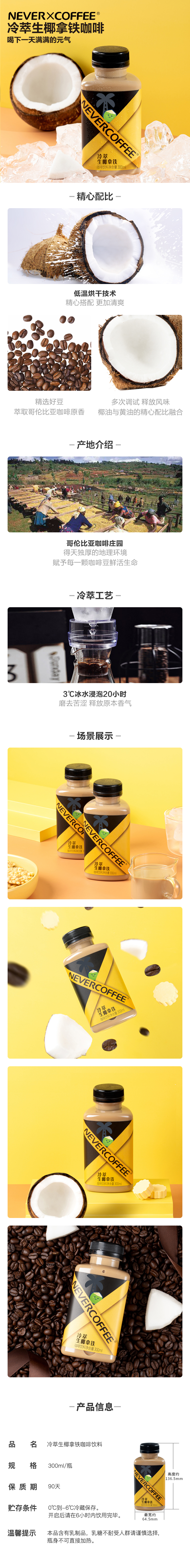 Never Coffee 冷萃生椰咖啡 300ml,保质期90天