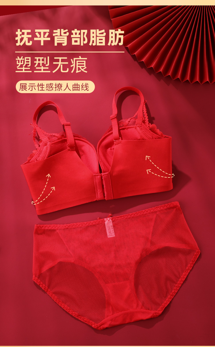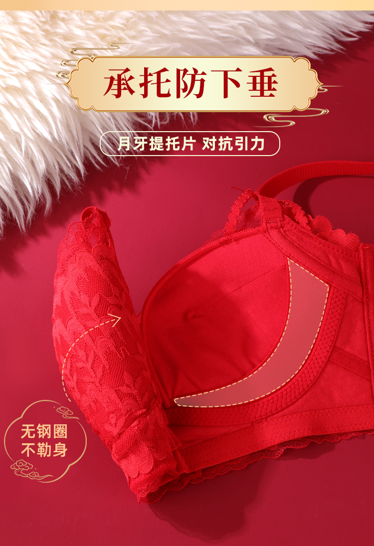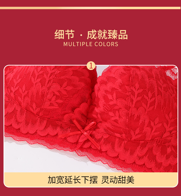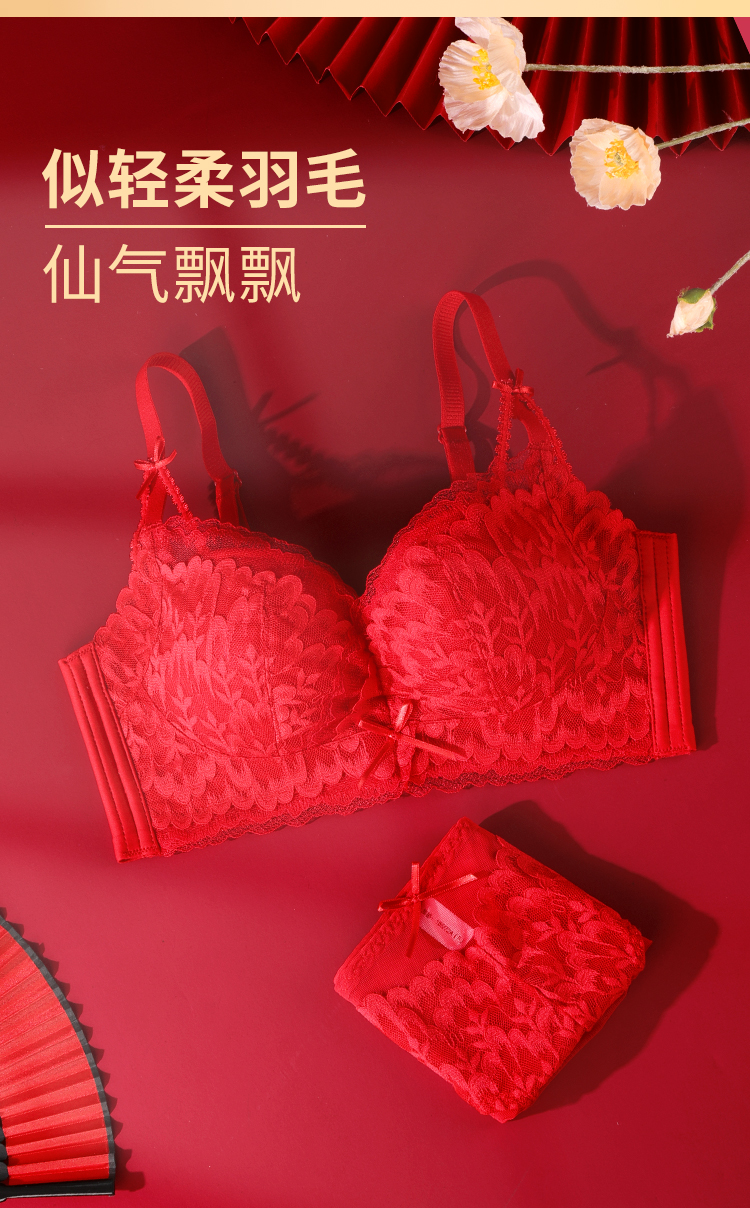 雅黛丽本命年红色内衣套装小胸聚拢显大性感蕾丝文胸内裤结婚新娘