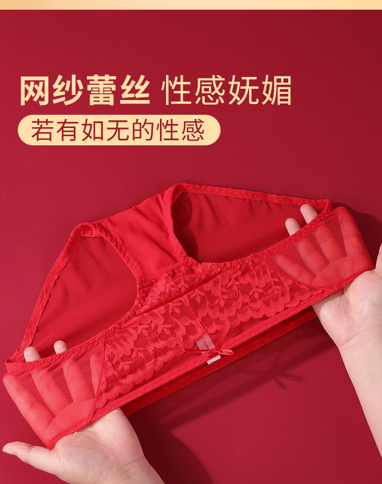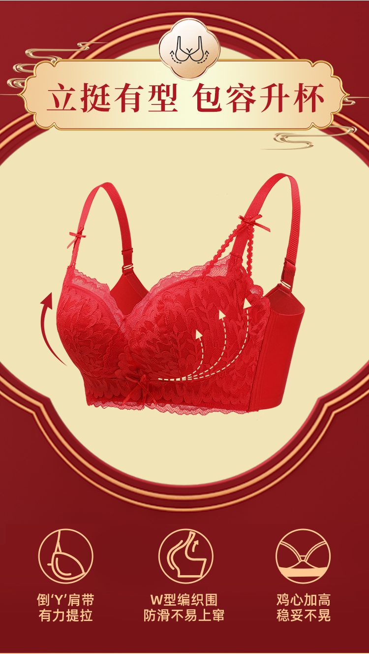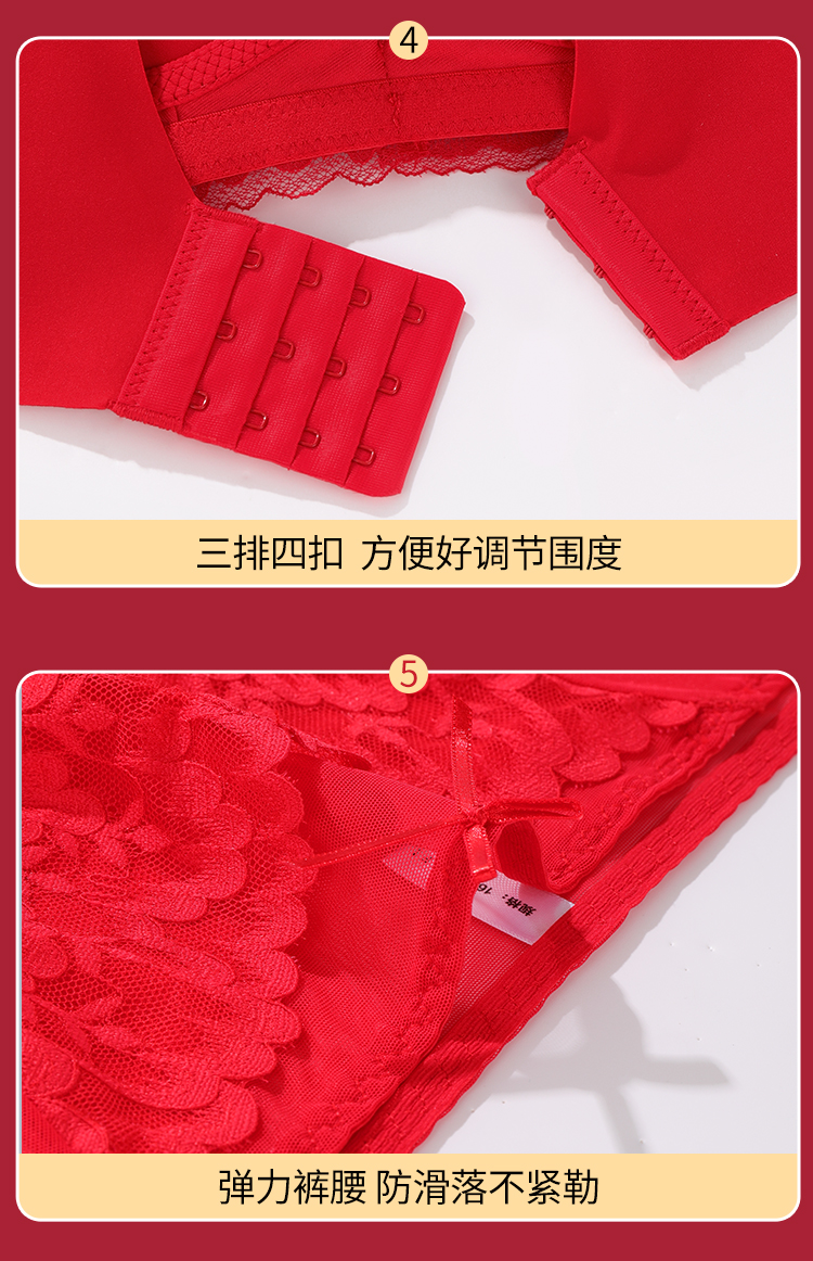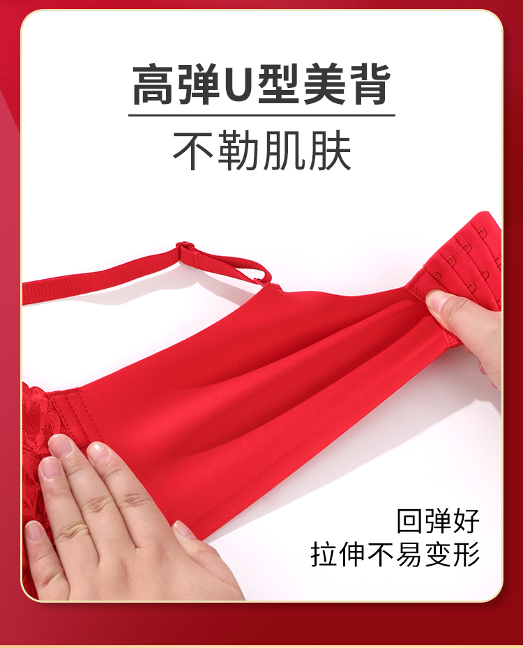 雅黛丽本命年红色内衣套装小胸聚拢显大性感蕾丝文胸内裤结婚新娘