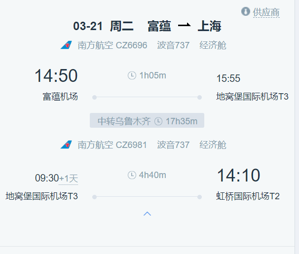(乌鲁木齐经停40分钟,不下飞机)