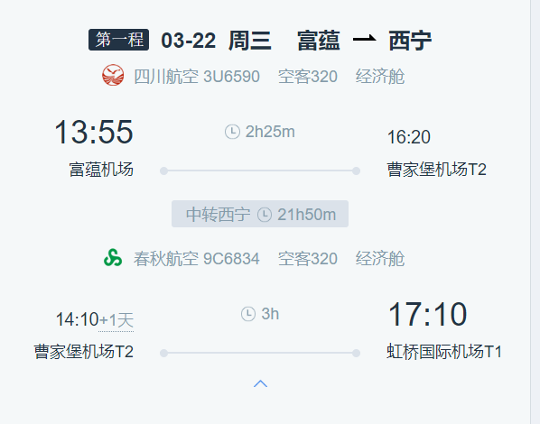 回程航班推荐