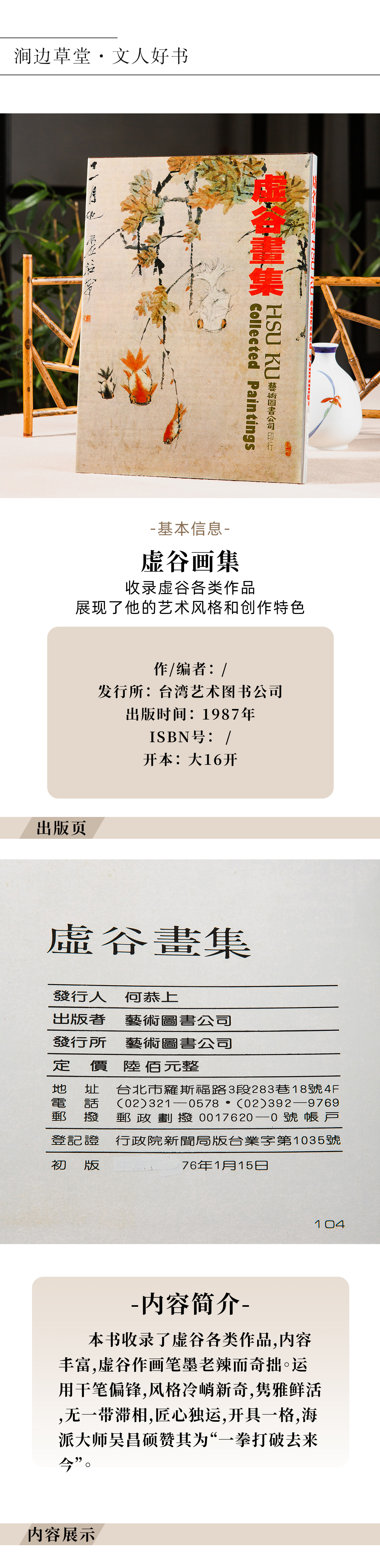 【绝版好书】1987年台湾艺术图书出版《虚谷画集》大16开精装104页