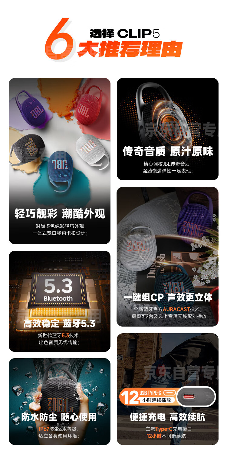 JBL CLIP5 音乐盒五代 蓝牙音箱