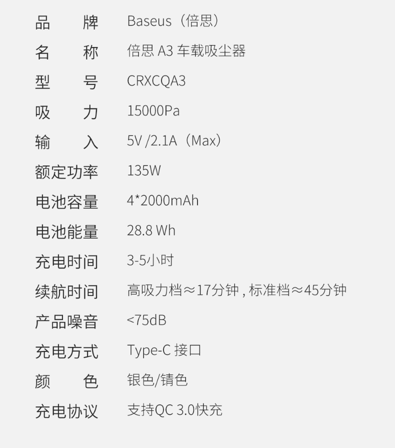 倍思 A3 车载/家用多功能吸尘器