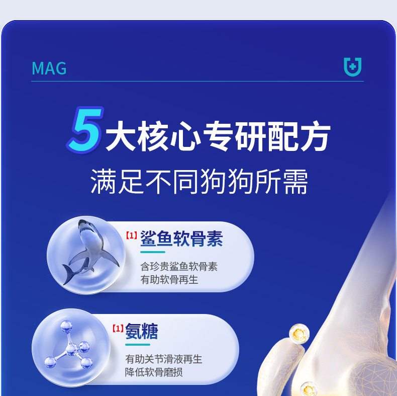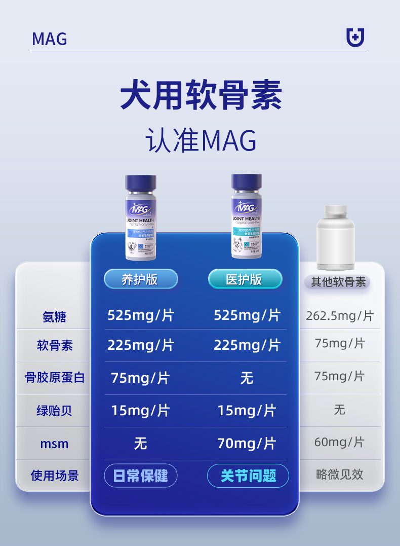 【U+系列】MAG医护版关节生 40片盒装 鲨鱼软骨素补充氨糖老年犬折耳猫关节养护镇痛消肿