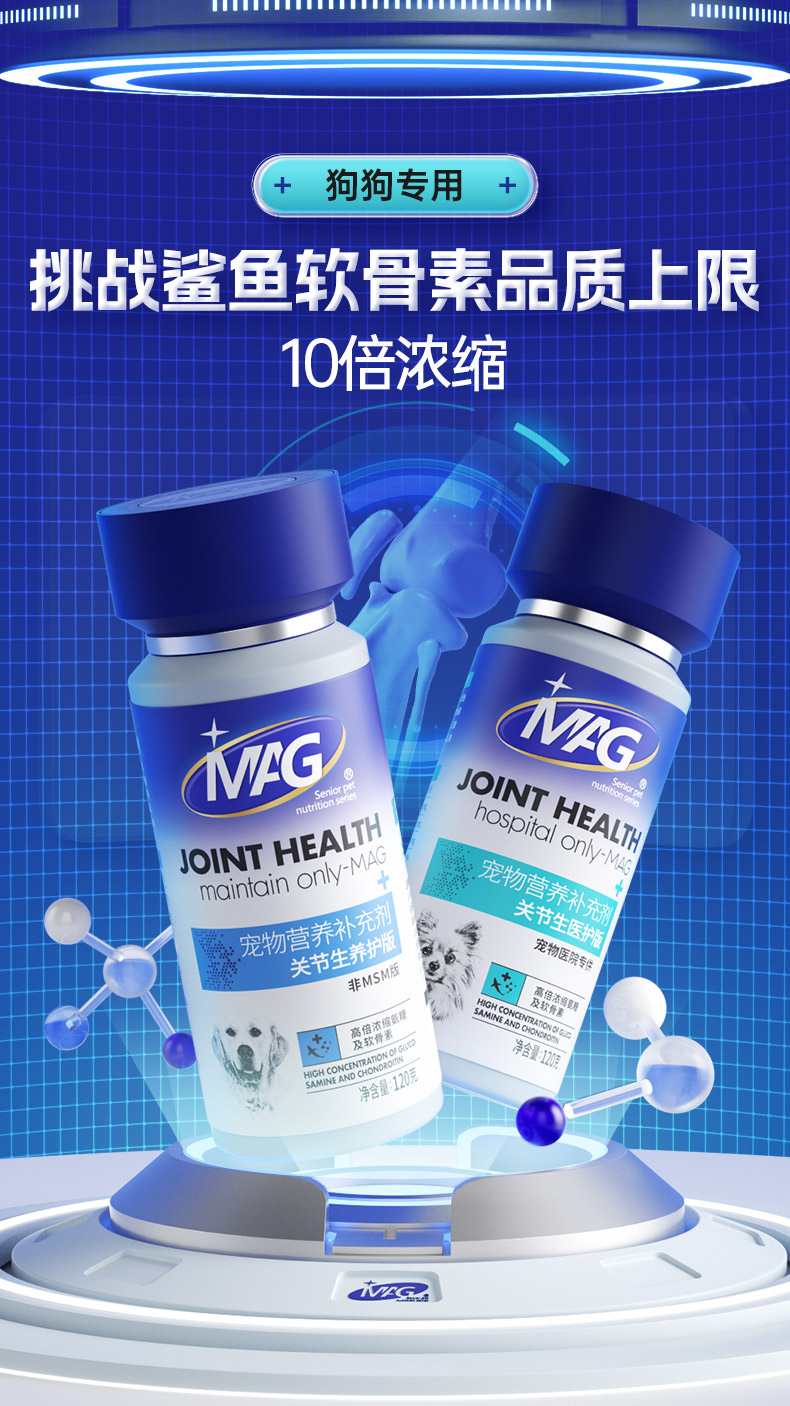 套餐【3盒MAG关节生180片+1盒超能钙鲨鱼软骨粉400g】 宠物髌骨髋关节问题适用健骨补钙关节炎症