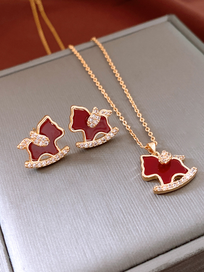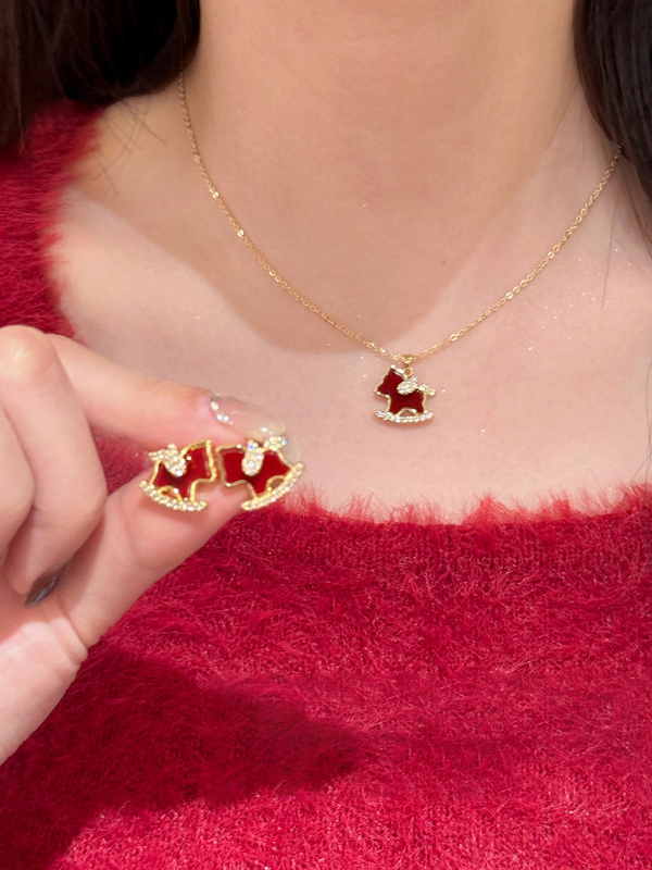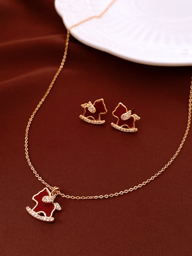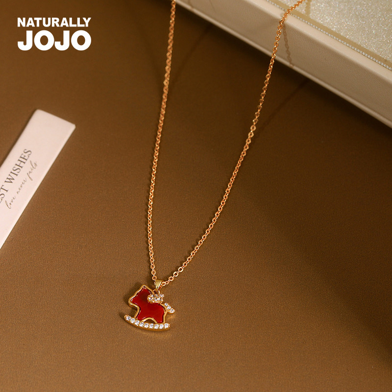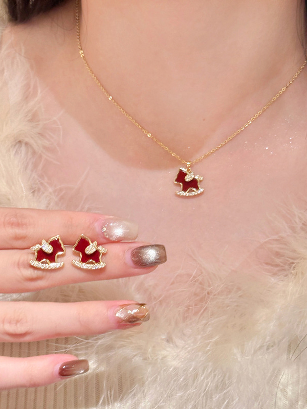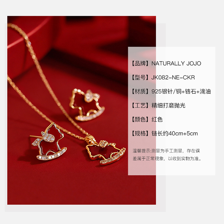 【下单赠幸运红绳1条】“王府井百货在售” 美国品牌 NATURALLY JOJO 摇摇来財小马项链/耳环2件套 925银针 时尚百搭 精致可爱