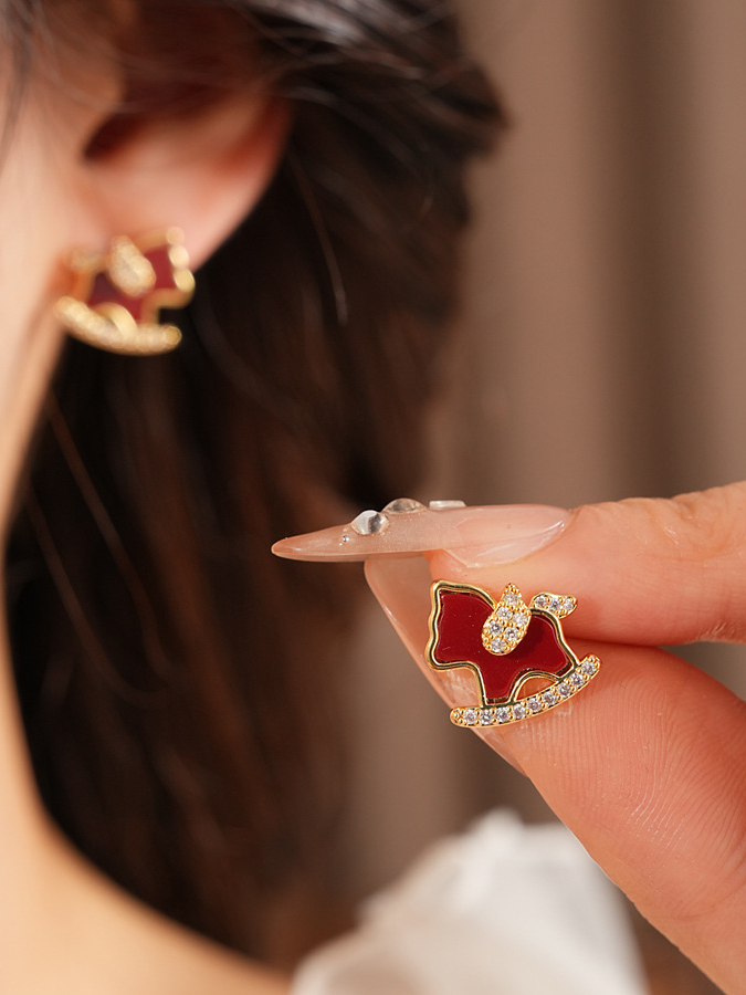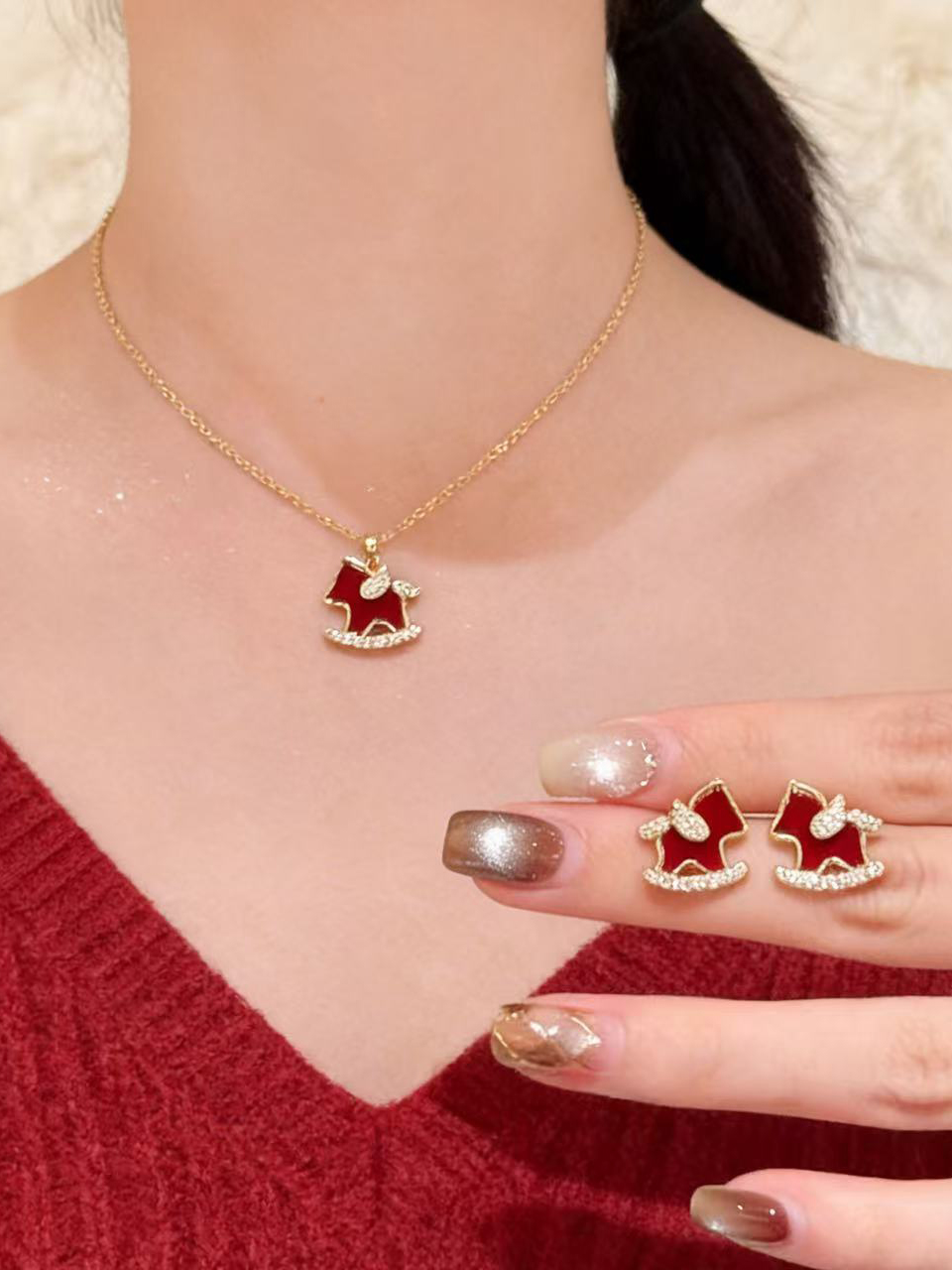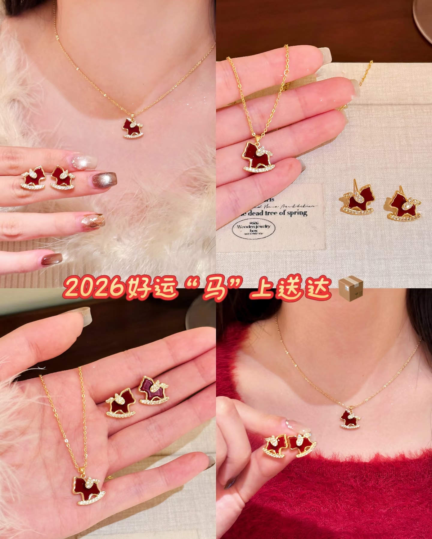 【下单赠幸运红绳1条】“王府井百货在售” 美国品牌 NATURALLY JOJO 摇摇来財小马项链/耳环2件套 925银针 时尚百搭 精致可爱