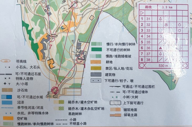 利用地图和指北针依次到访地图上所指示的各个点标,力争以最短时间到达所有点标完成打卡和寻宝。