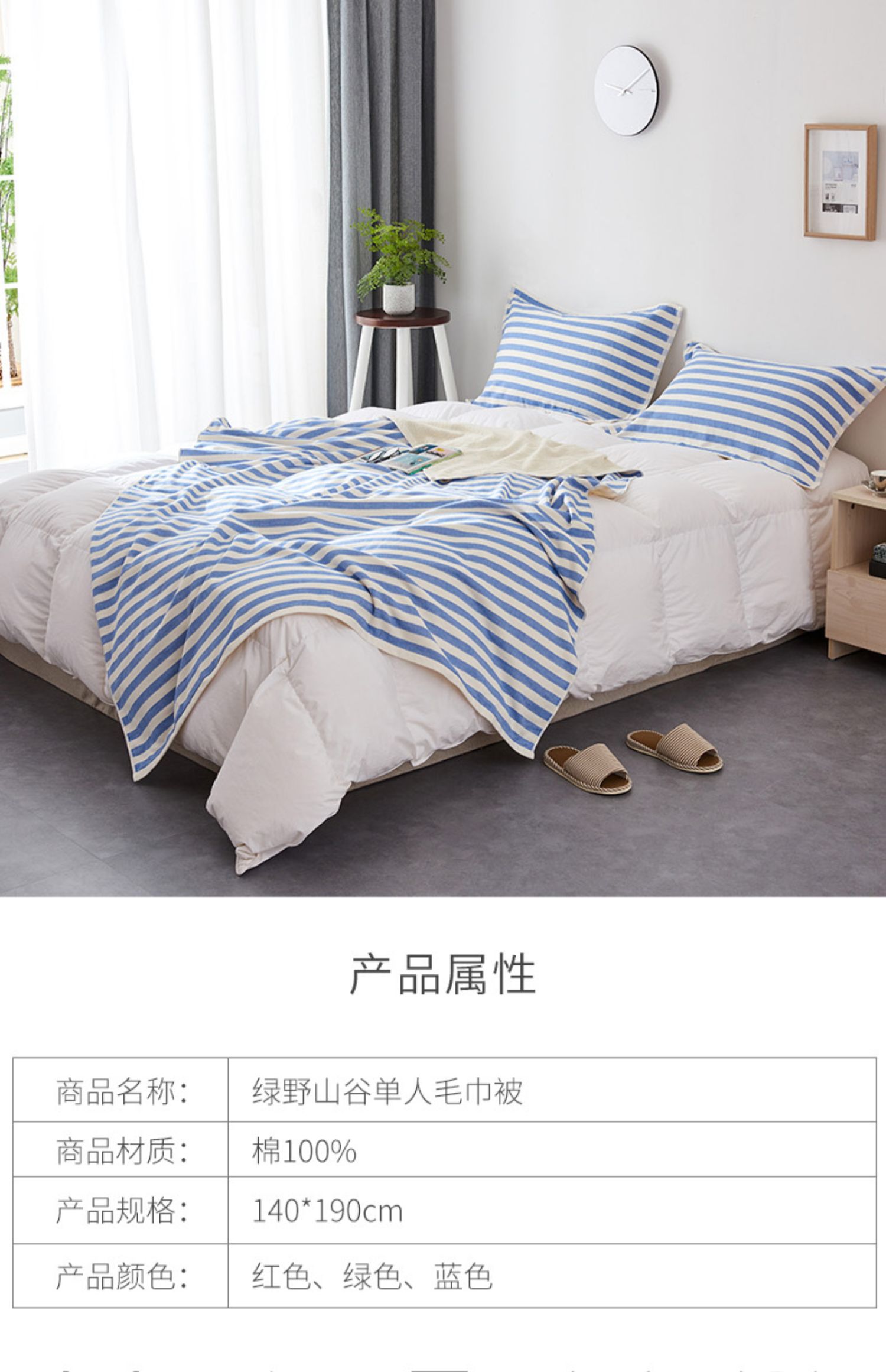 绿野山谷单人毛巾被 经典简约条纹140*190cm 无印良品