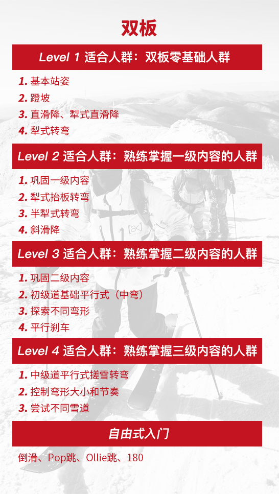 完成对应等级课程可报名参加美国AASI九级滑雪认证。