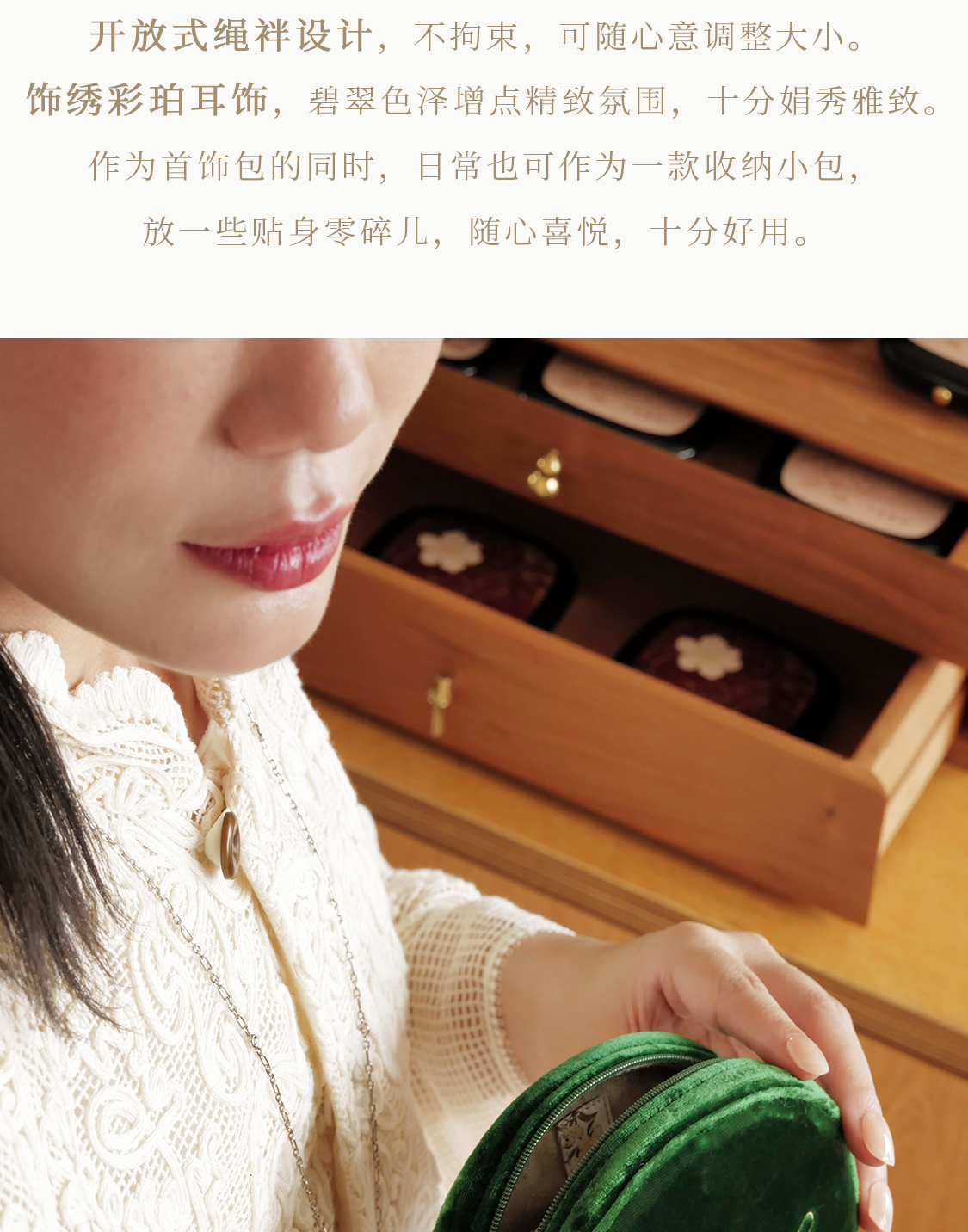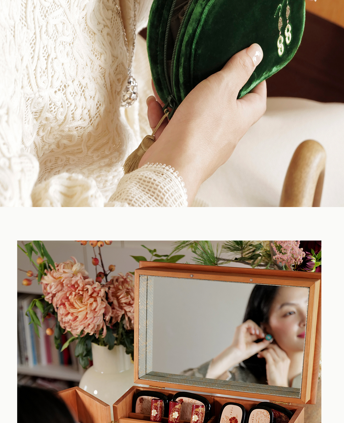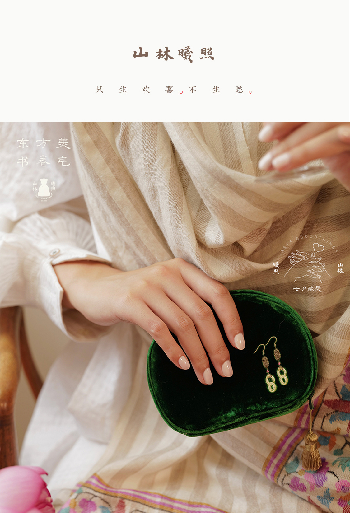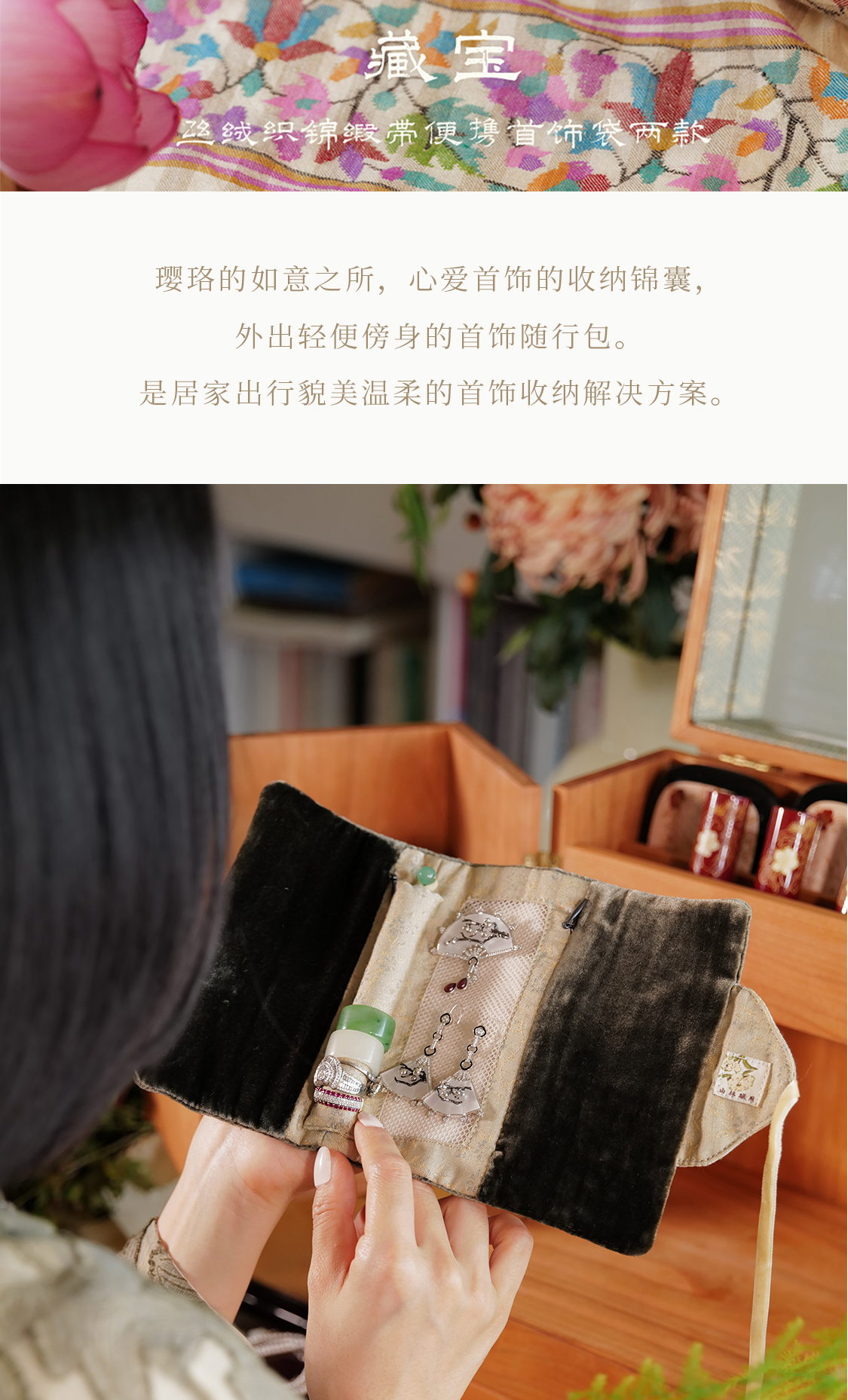 藏宝 丝绒织锦缎带便携首饰袋两款 山林曦照