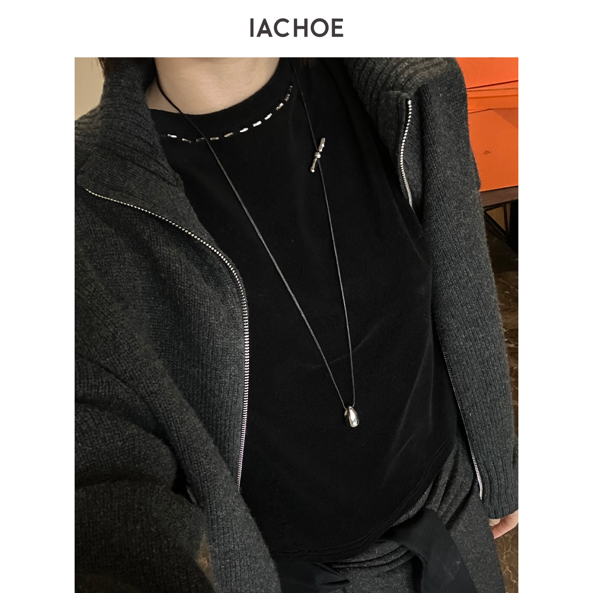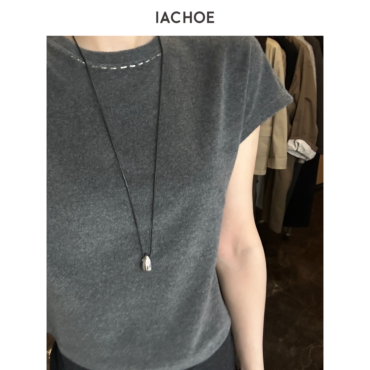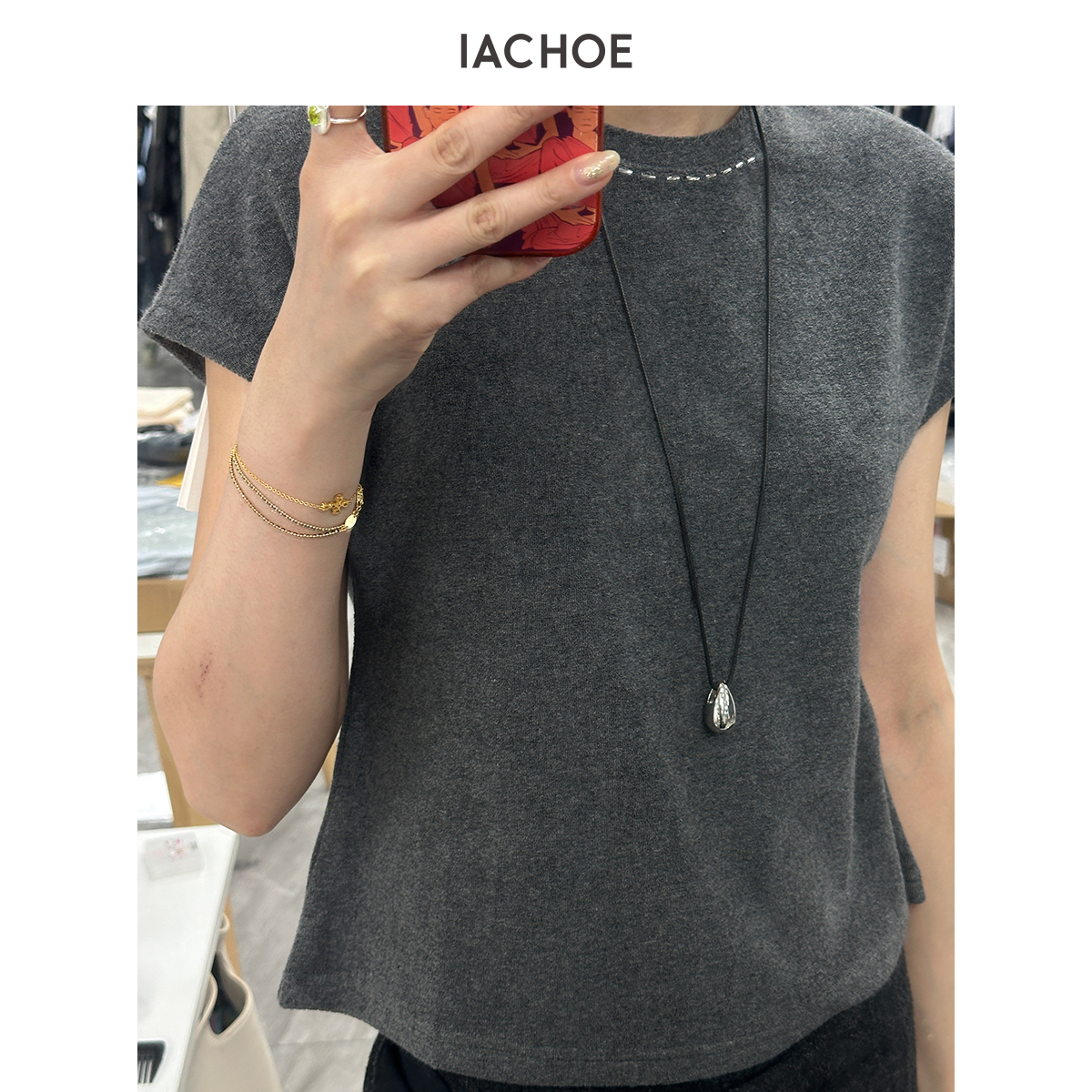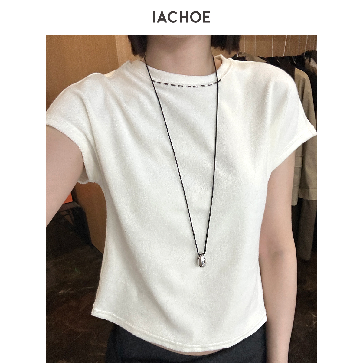 棉仓3631501001-IACHOE【微笑T】领口虚线修身T恤