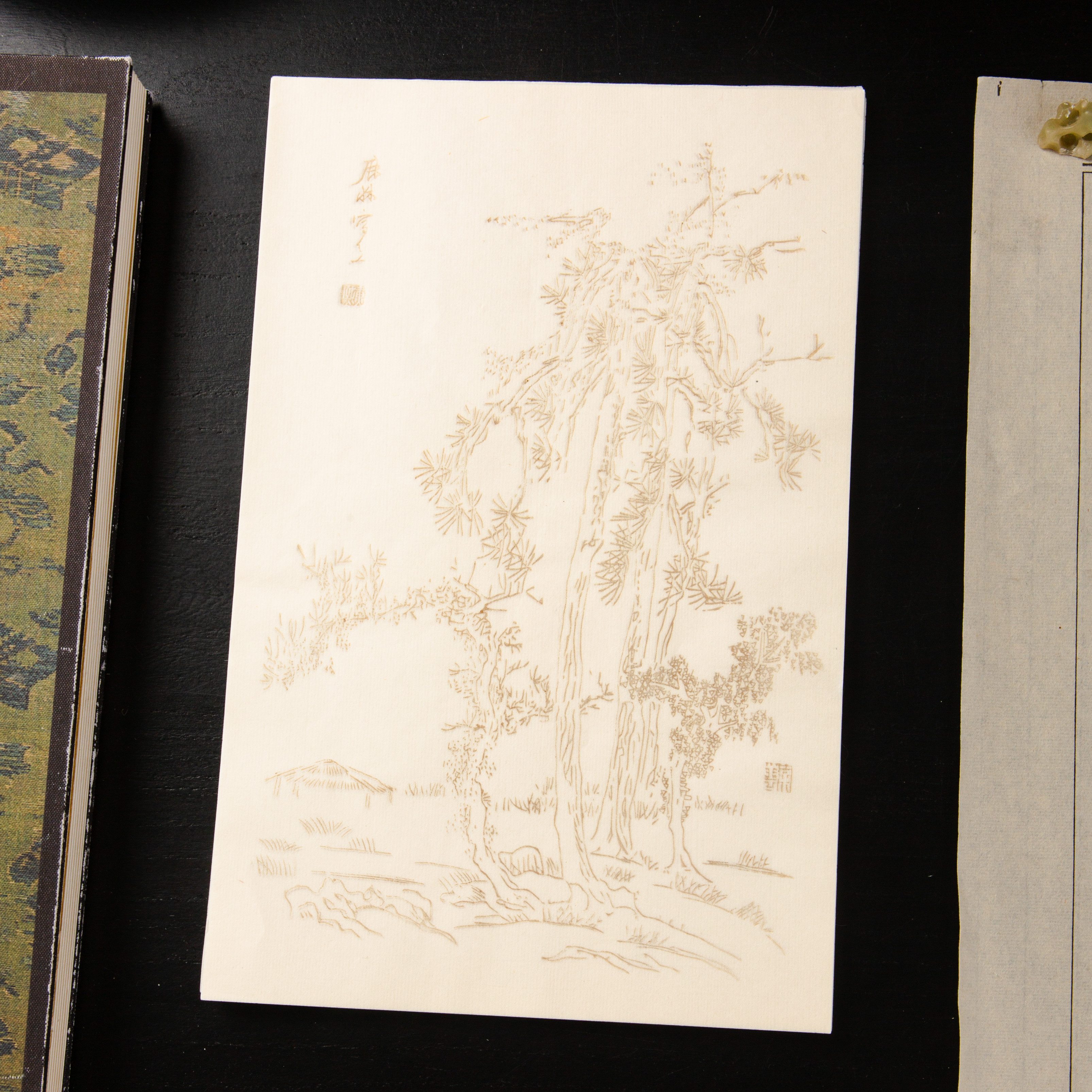 80-90年代荣宝斋制木版水印《戴熙山水》老信笺,一套4种图案,每种图案12张,共48张。其雕版精美,颜色雅致,纸张质地上乘。