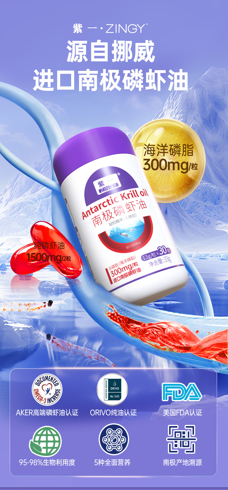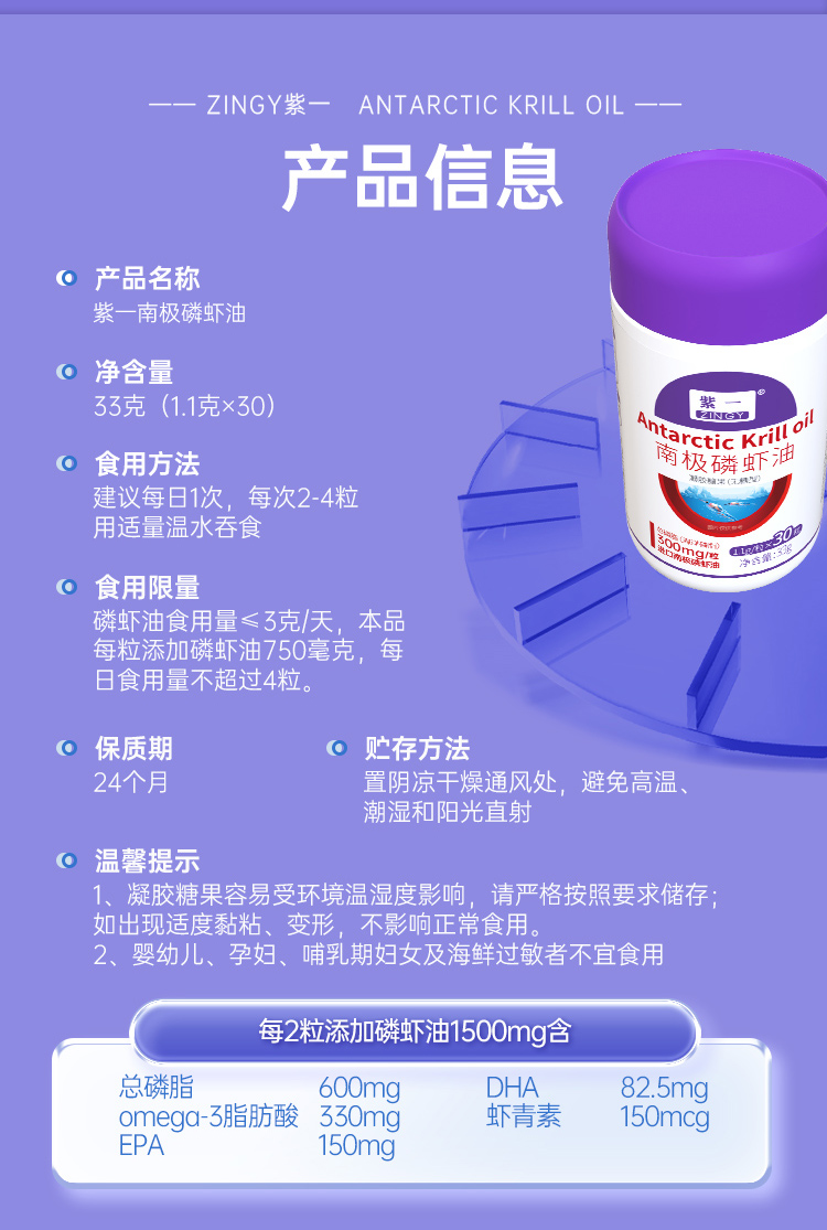 紫一南极磷虾油 30粒装 套装4瓶