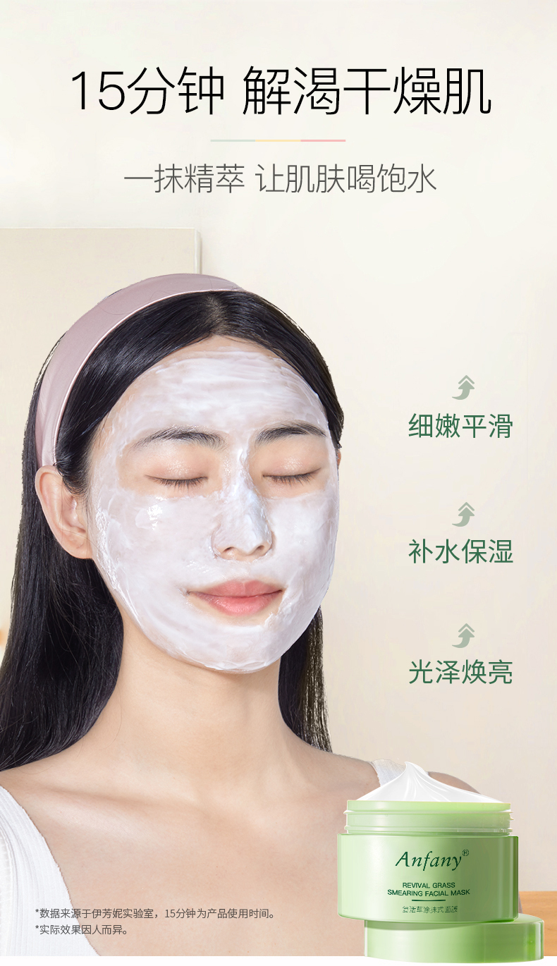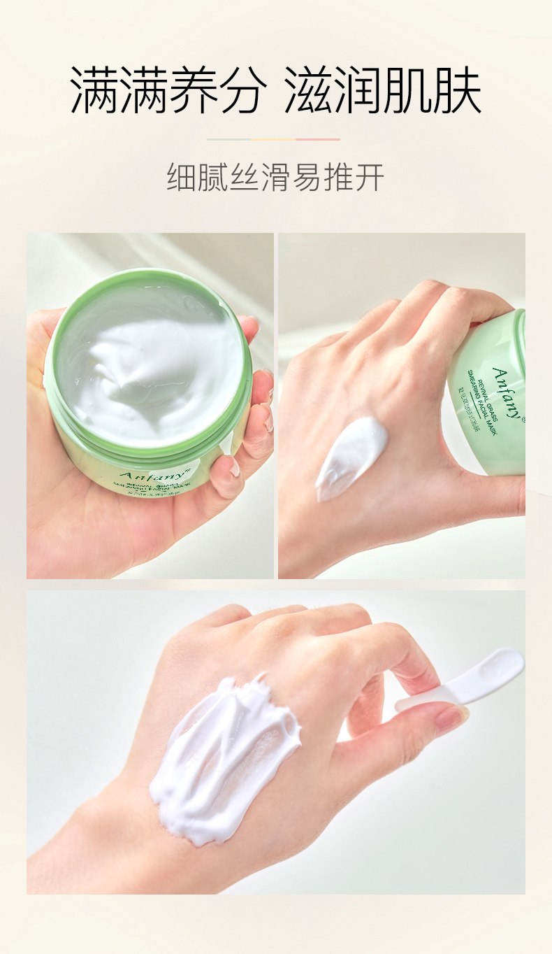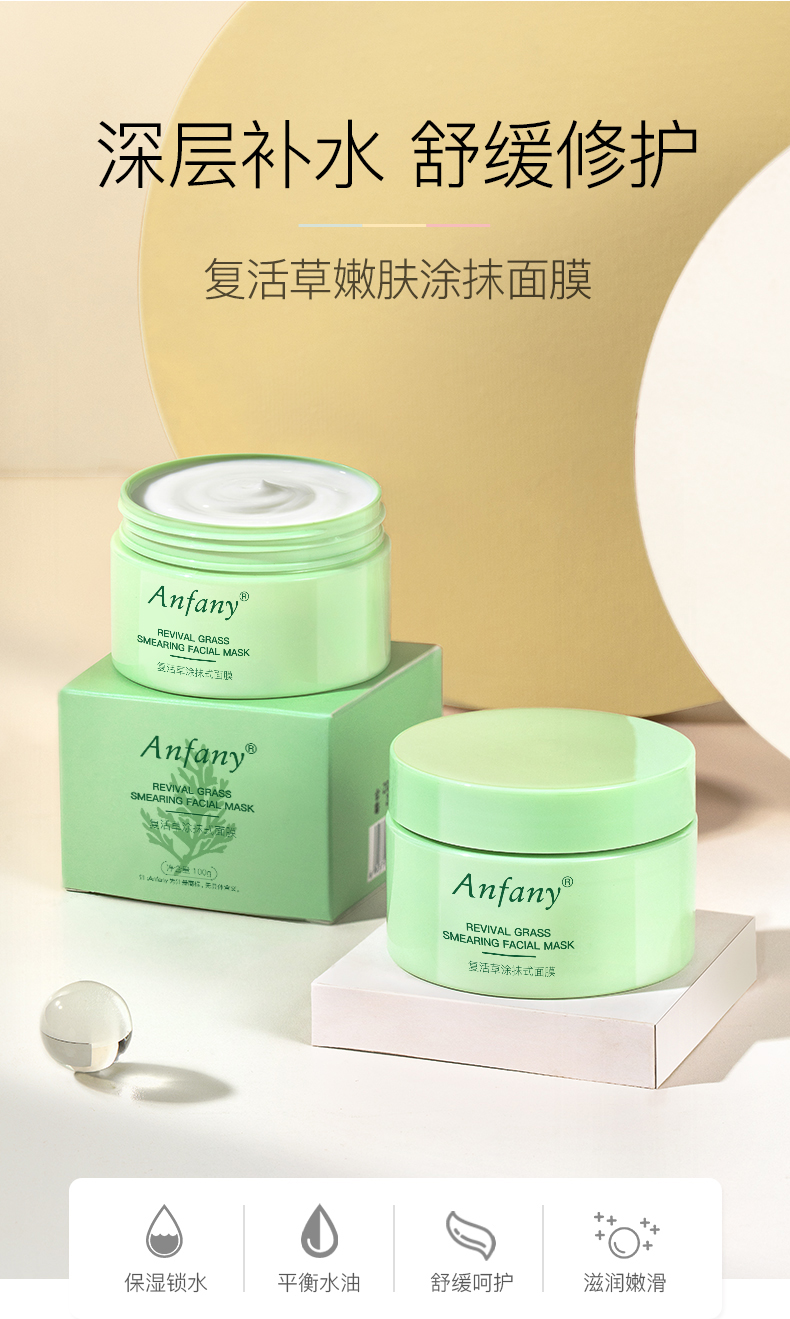 【Anfany伊芳妮--复活草涂抹式面膜】采用高纯植萃精华复活草、独特的海藻寡糖和沙棘水、补水保湿能力强、蚕丝胶蛋白提升肌肤弹性、冰淇淋慕斯质地、温和不刺激、一瓶=补水+修复+嫩肤!