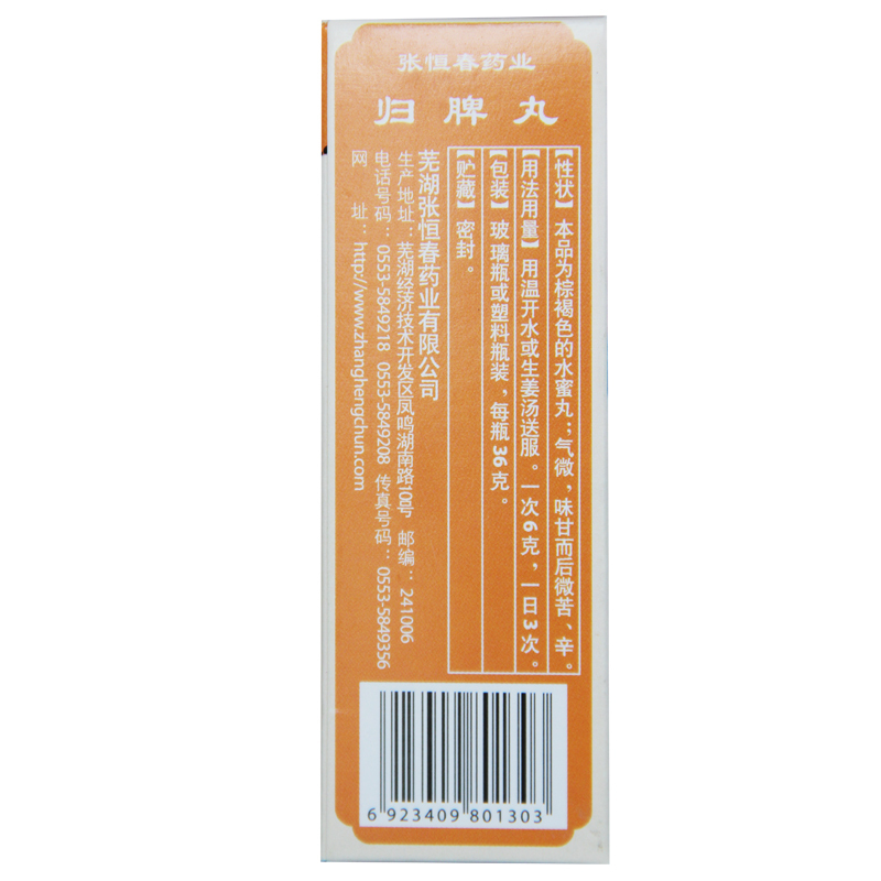 张恒春 归脾丸(水蜜丸)36g/瓶 益气健脾 养血安神 心脾两虚