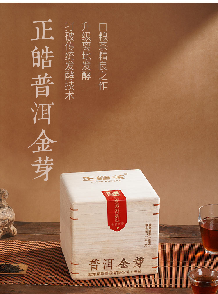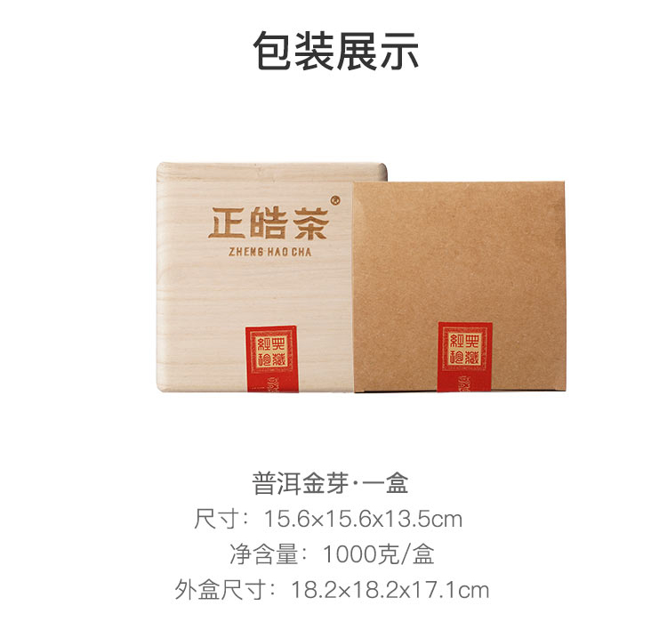 正皓茶业丨普洱金芽 普洱熟茶 熟普散茶 2017年原料 1000g 木礼盒装