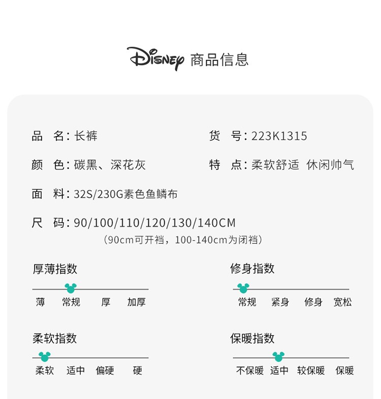 迪士尼童装春秋新品儿童休闲裤男童时尚运动裤子223K1315