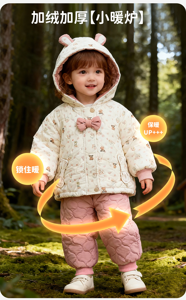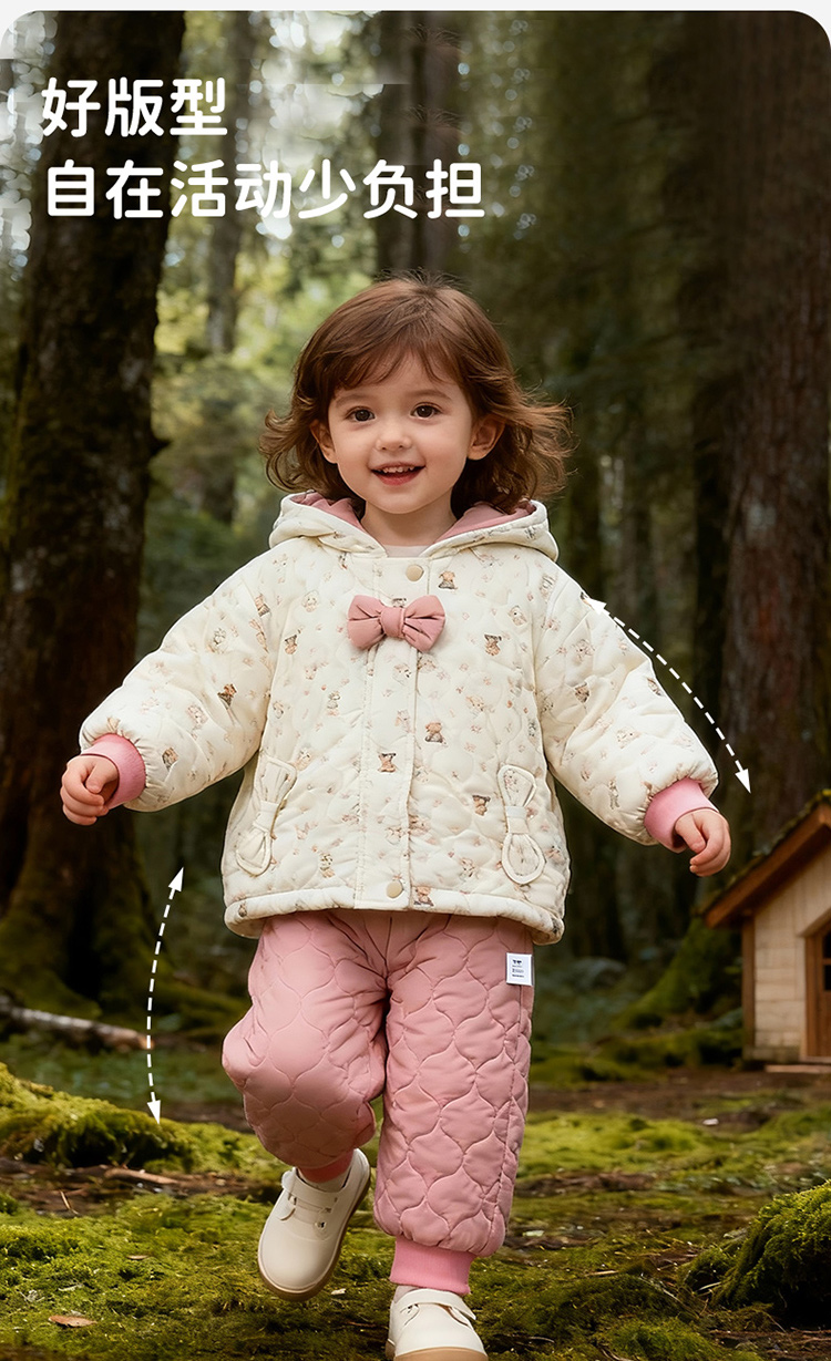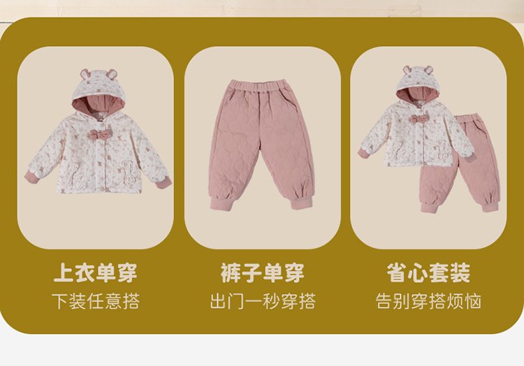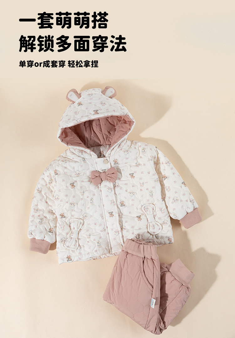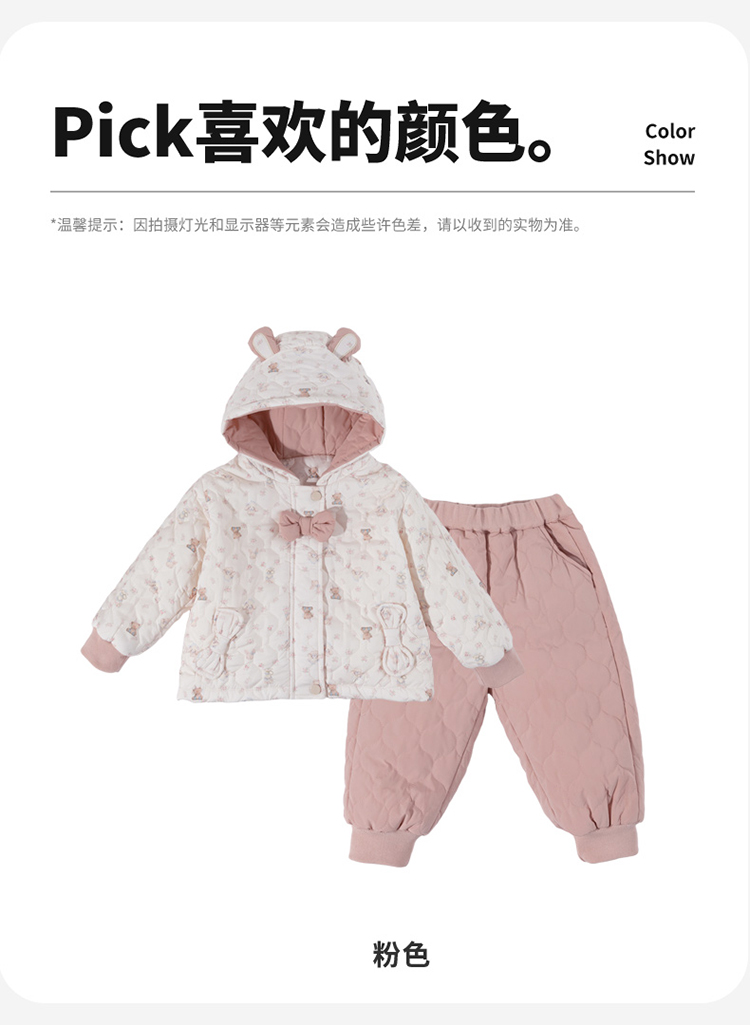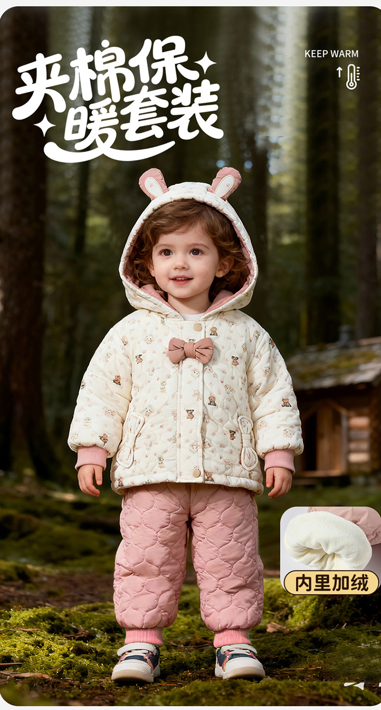 贝贝怡童装儿童加厚棉服套装女童连帽棉服棉裤2025冬季新款冬装ZB4ET014