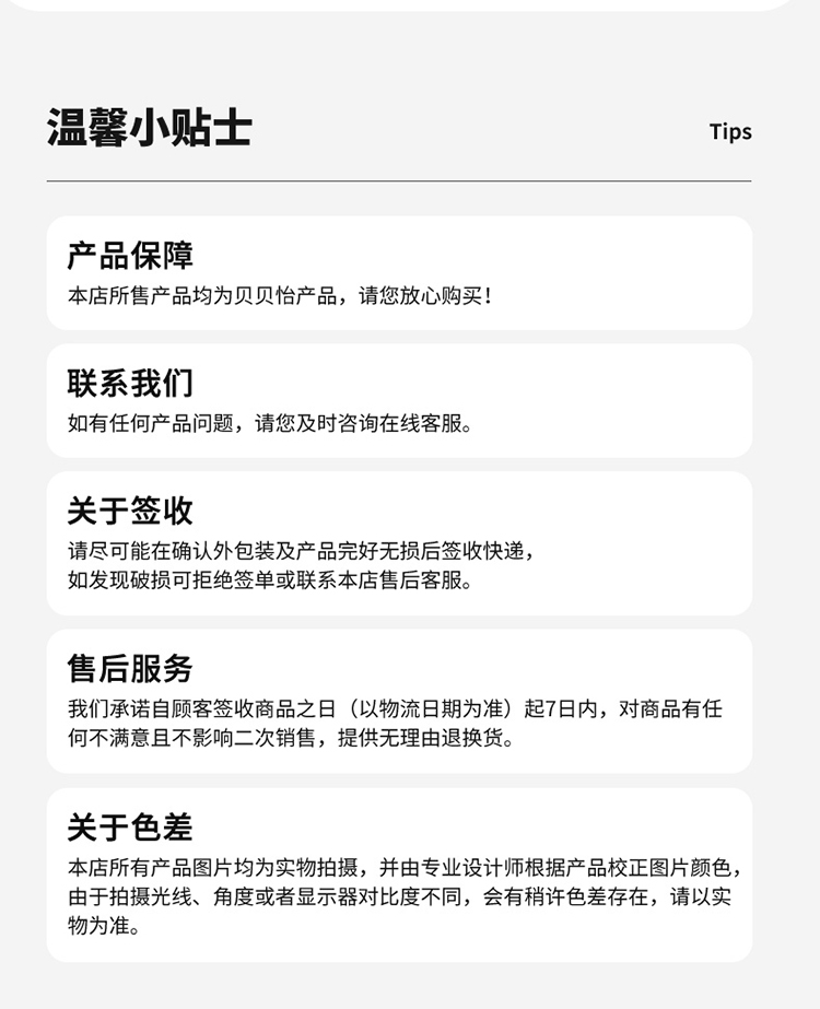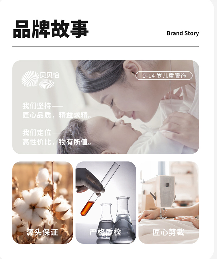 - 贝贝怡专注0-6岁婴幼儿服饰,坚持安全、柔软、舒适的产品理念,为千万中国家庭提供超高品质、安全可靠的婴幼儿服饰产品,妈妈放心,宝宝开心!