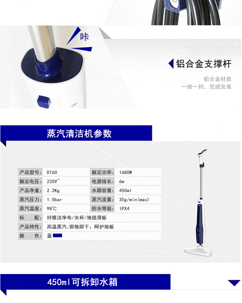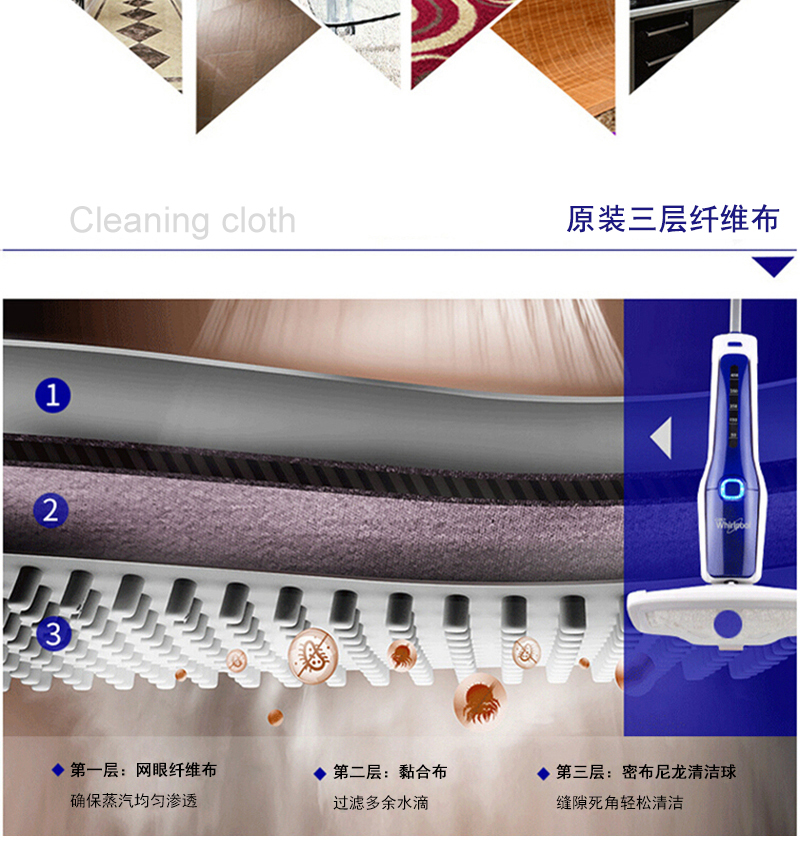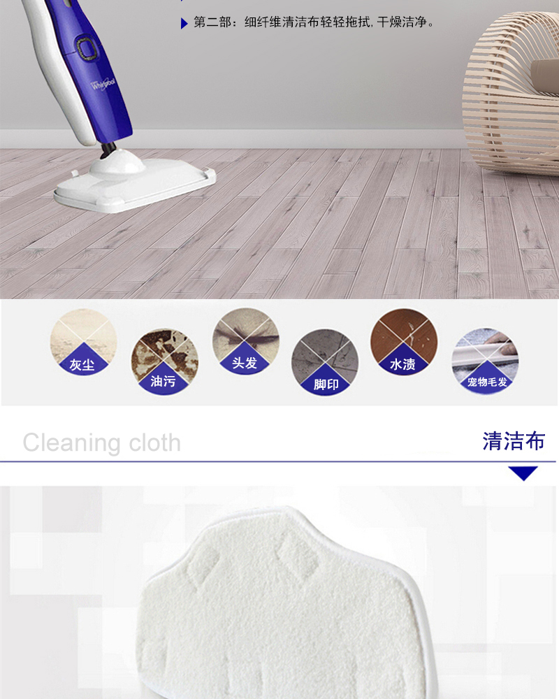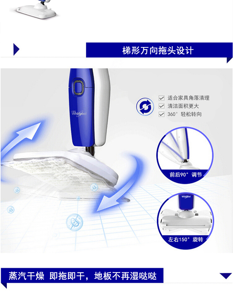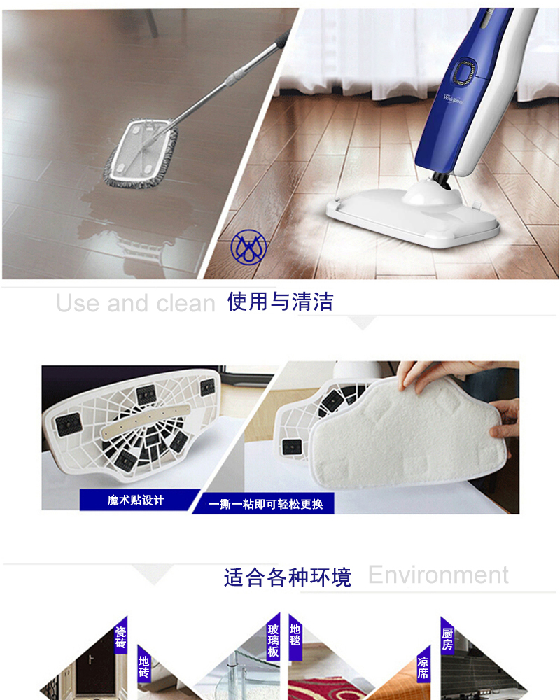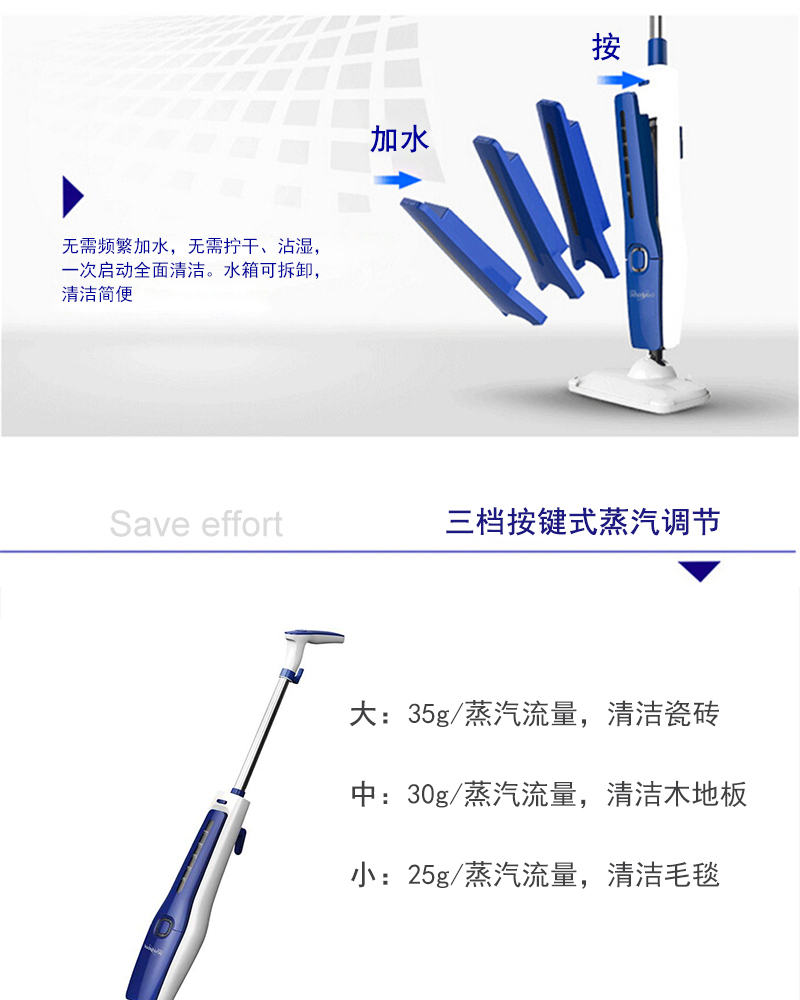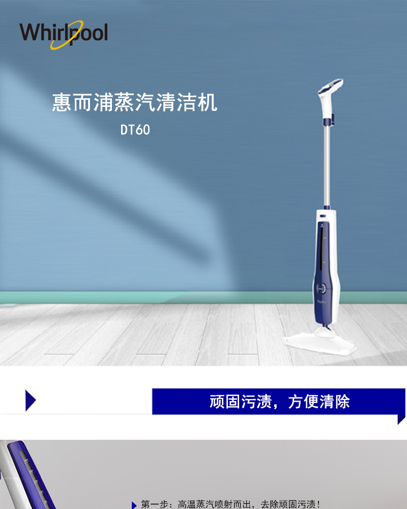 惠而浦蒸汽清洁机DT60 98℃高温蒸汽 瞬间杀灭细菌螨虫