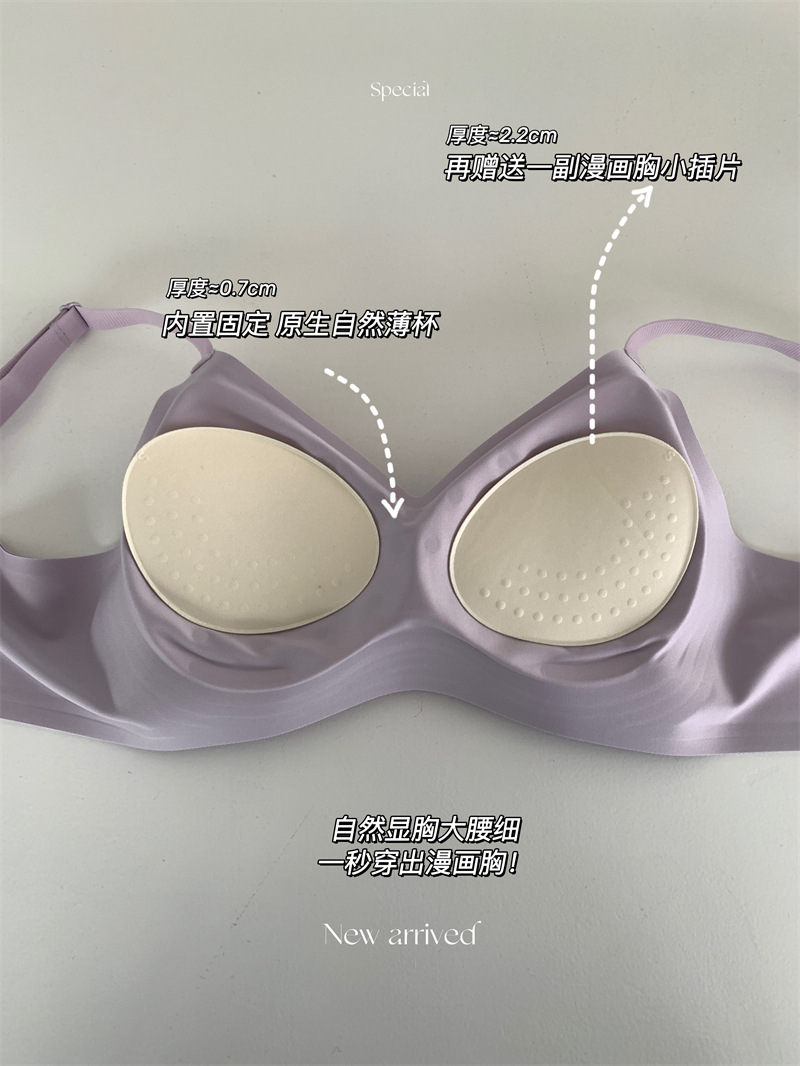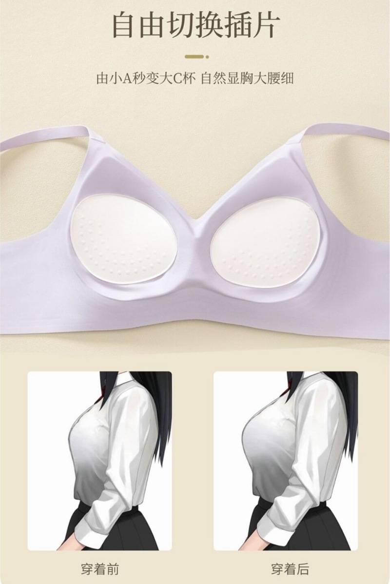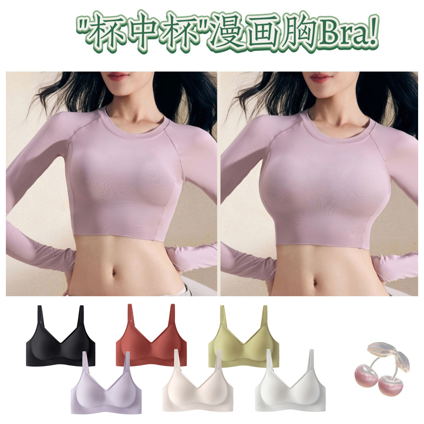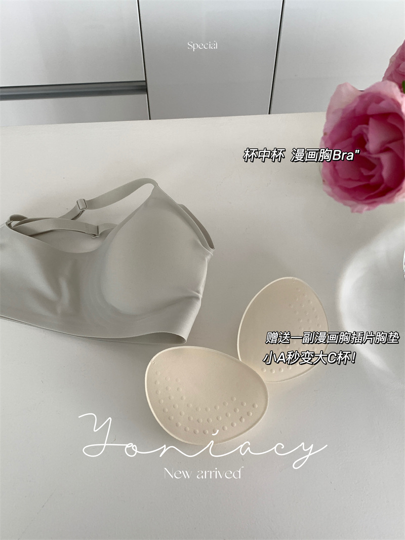 【杯中杯漫画胸】A变C!小胸显大安心内衣 2副胸垫自由切换 无痕固定杯胸垫胸罩聚拢无钢圈文胸