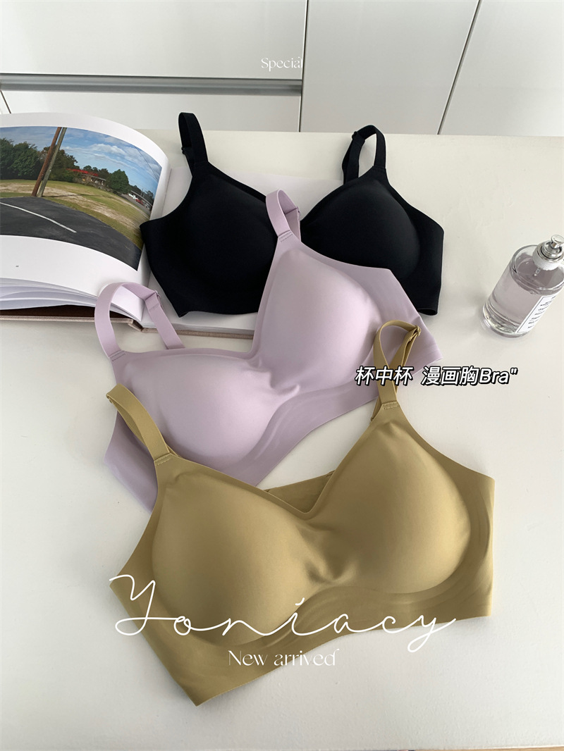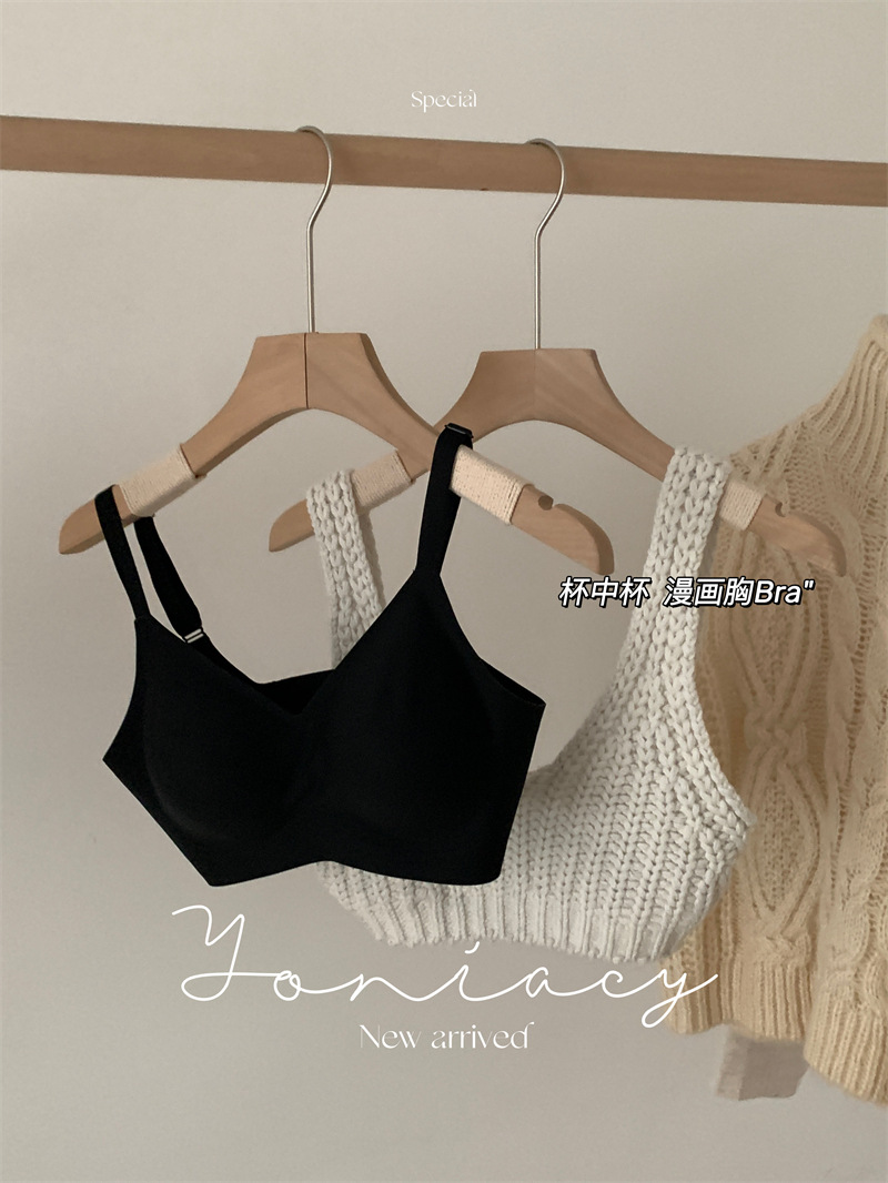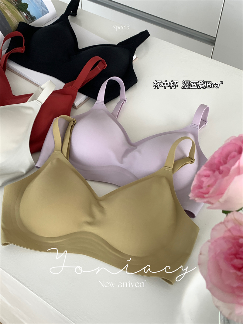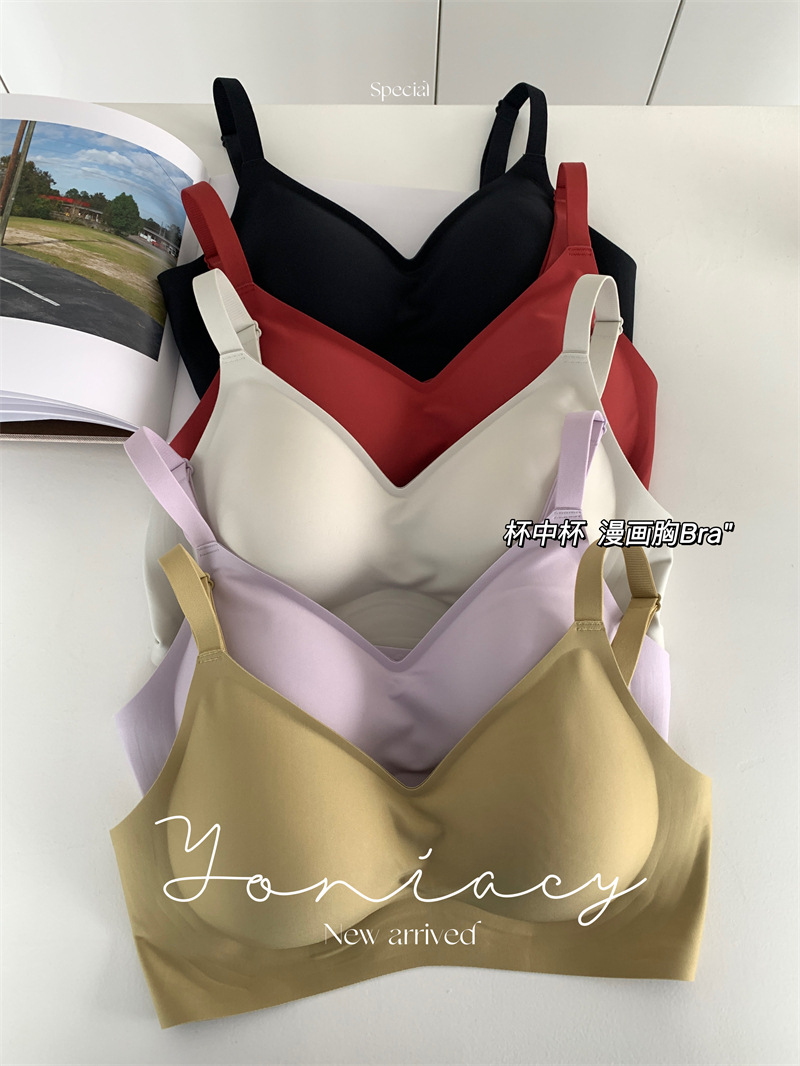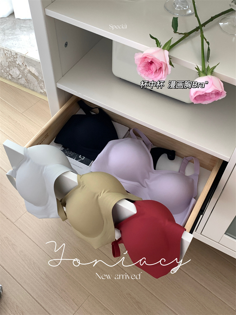 【杯中杯漫画胸】A变C!小胸显大安心内衣 2副胸垫自由切换 无痕固定杯胸垫胸罩聚拢无钢圈文胸