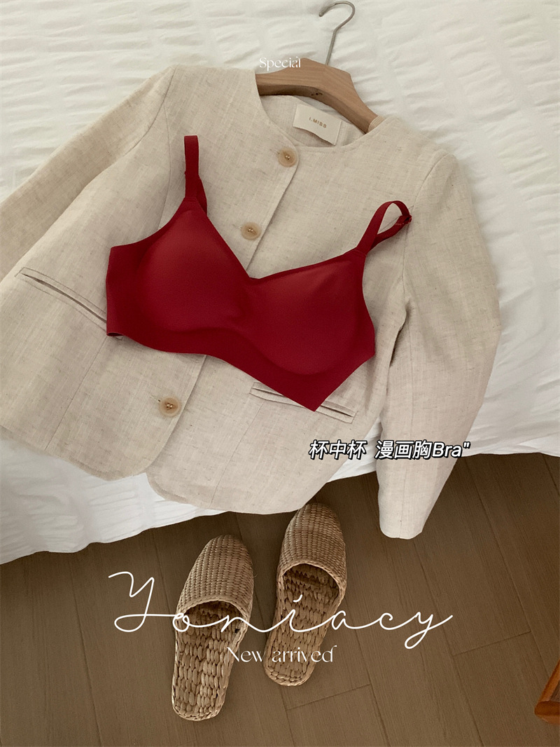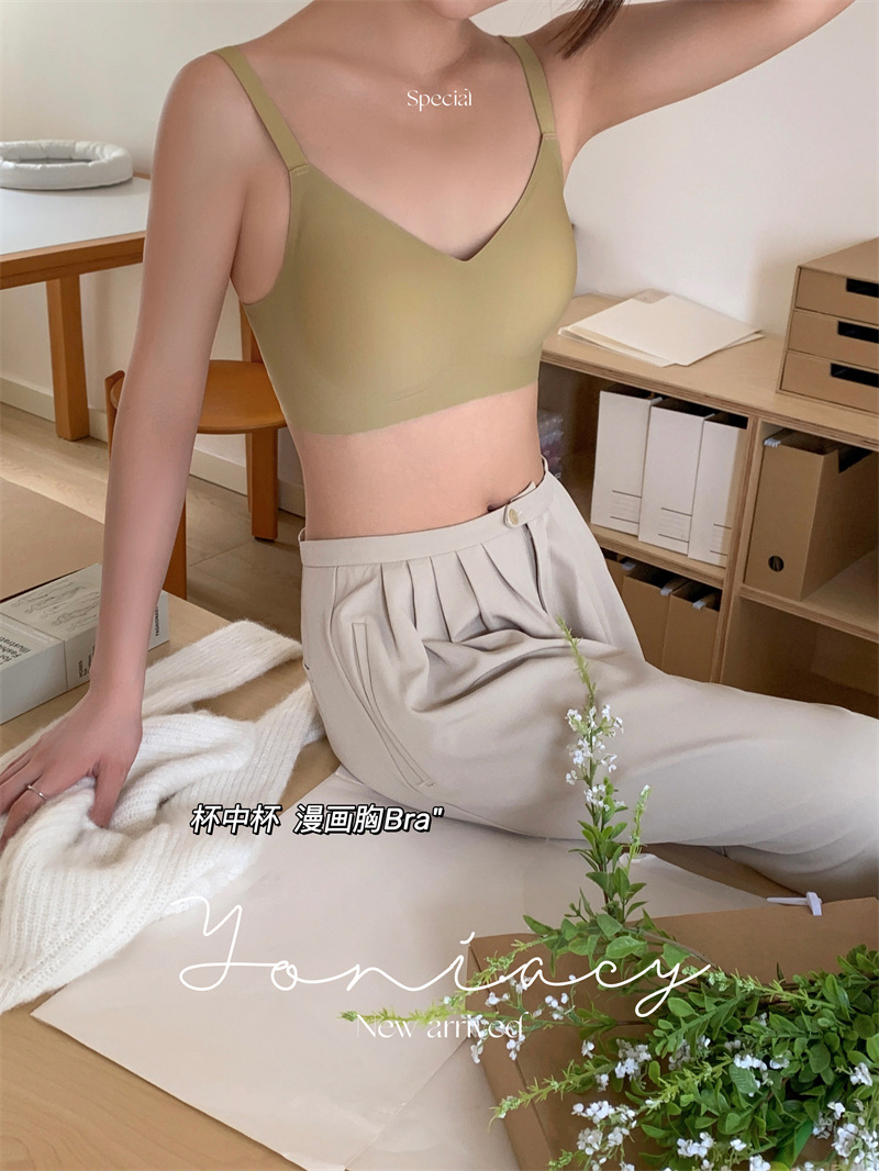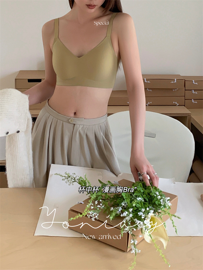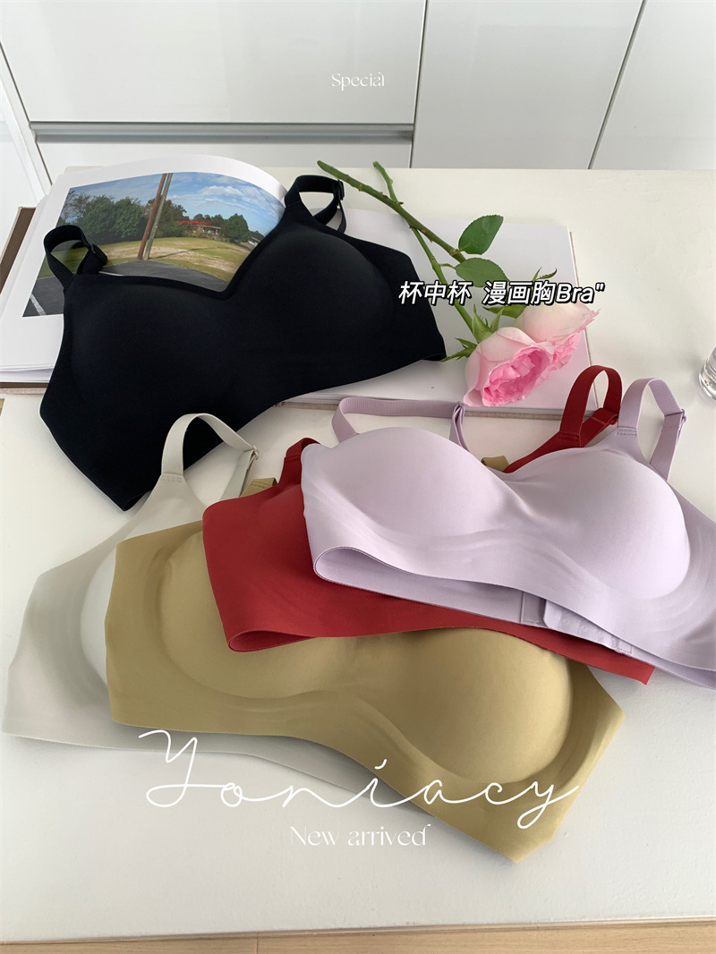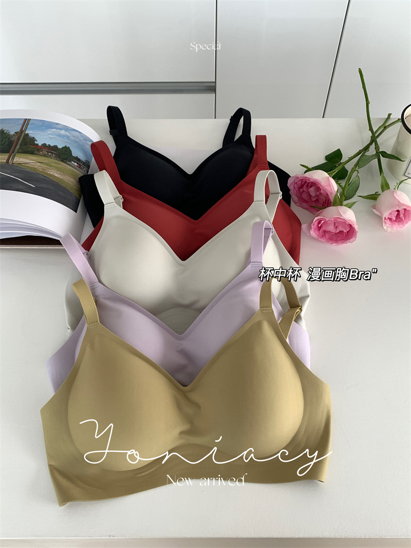 【杯中杯漫画胸】A变C!小胸显大安心内衣 2副胸垫自由切换 无痕固定杯胸垫胸罩聚拢无钢圈文胸