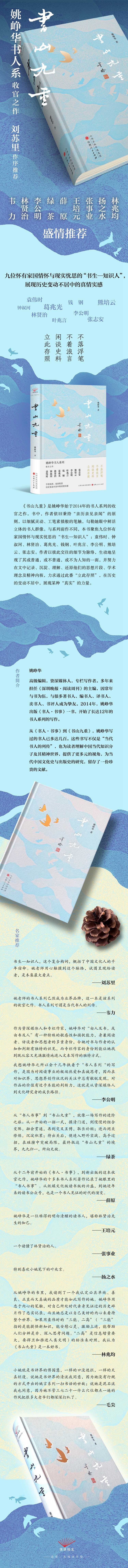 《书山九重》是姚峥华始于2014年的书人系列的收官之作。书中,作者依旧秉持;亲历亲见亲闻的原则,以细腻灵动、工笔素描般的笔触,勾勒她眼中鲜活立体的书人群像。与系列前作不同,本书聚焦九位怀有家国情怀与现实忧思的;书生知识人:袁伟时、钟叔河、林贤治、葛兆光、钱钢、叶兆言、李公明、熊培云、张志安。作者以彼此交往的细节为脉络,生动地呈现了其或普通,或不普通,或不为人知的一面,并努力在文中记录、沉淀、理解、还原他们的思想片段、学术理念及精神内核,力求通过此番;立此存照,在历史的变动不居中,展现某种;真实的力量。