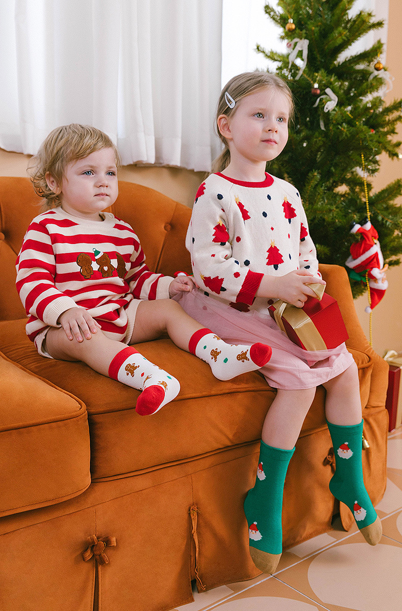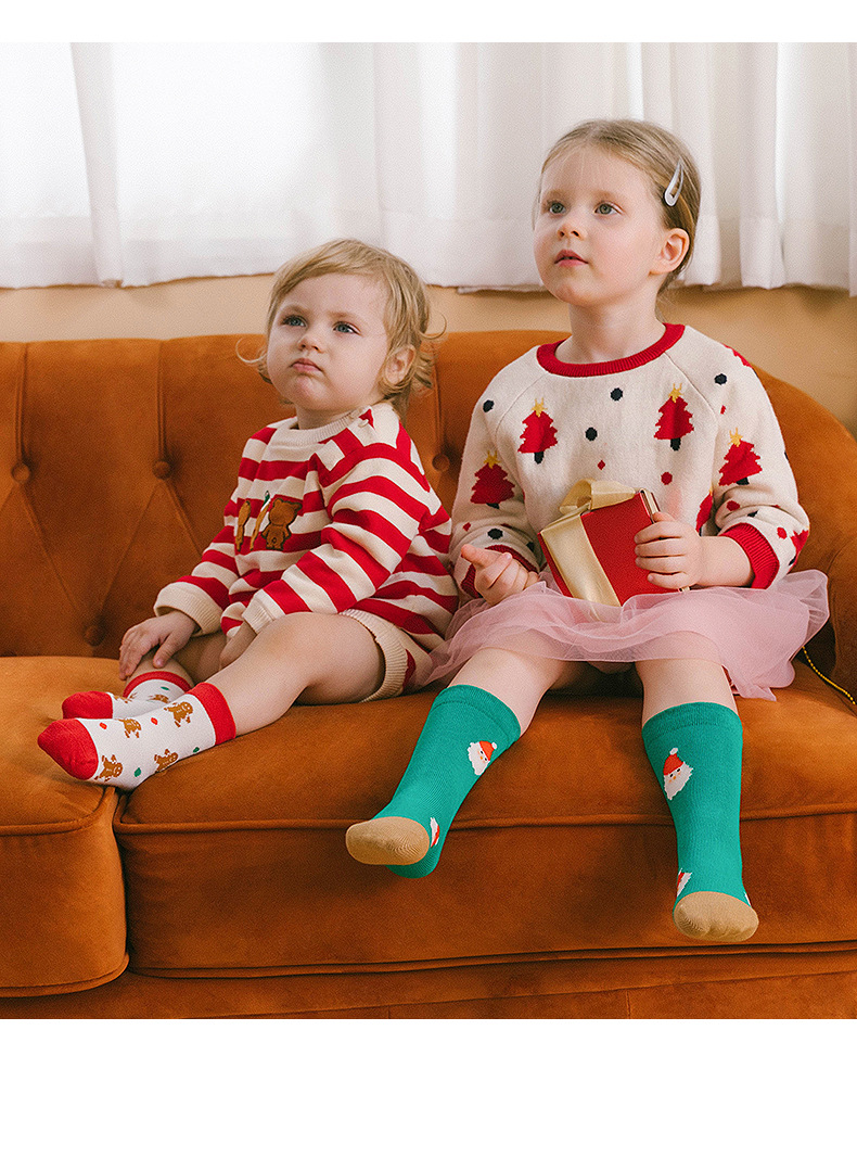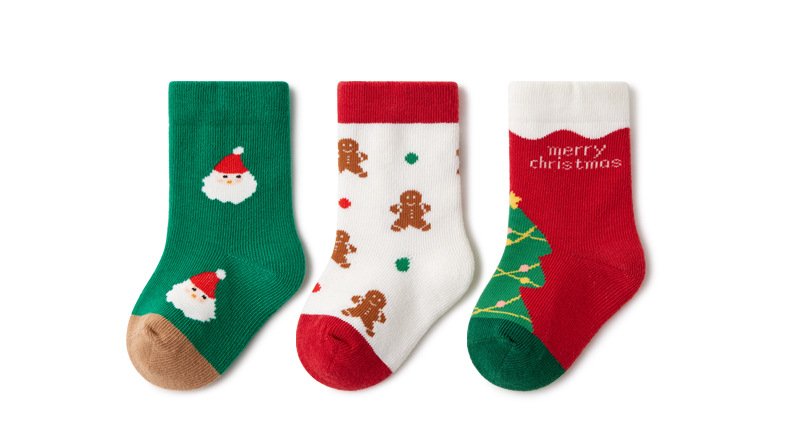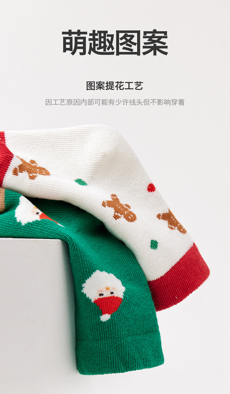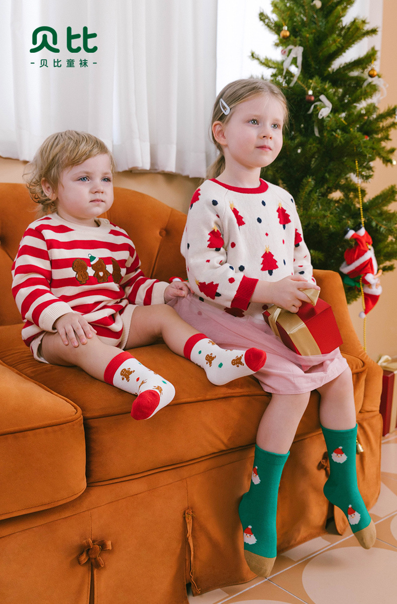 【3双礼盒装】贝比圣诞袜2022秋冬宝宝中筒袜圣诞老人儿童袜卡通姜饼人婴儿袜子