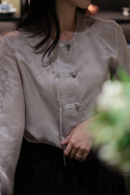 盛唐婧 |淡翠绿国风提花上衣[特价品]