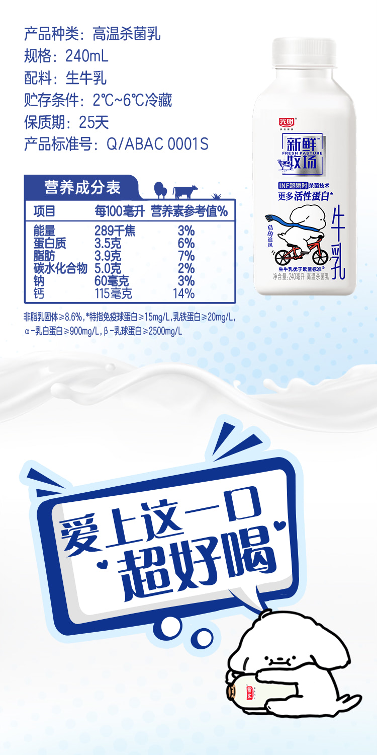 光明新鲜牧场INF牛乳240ml,保质期25天