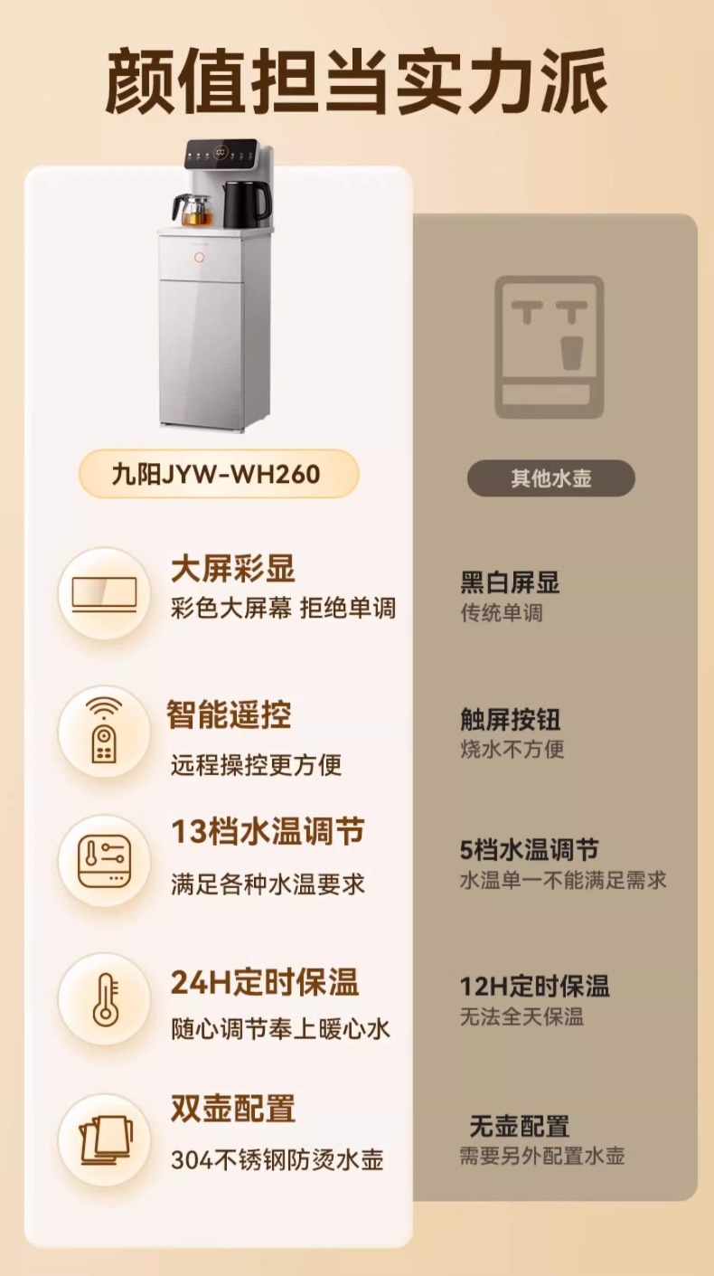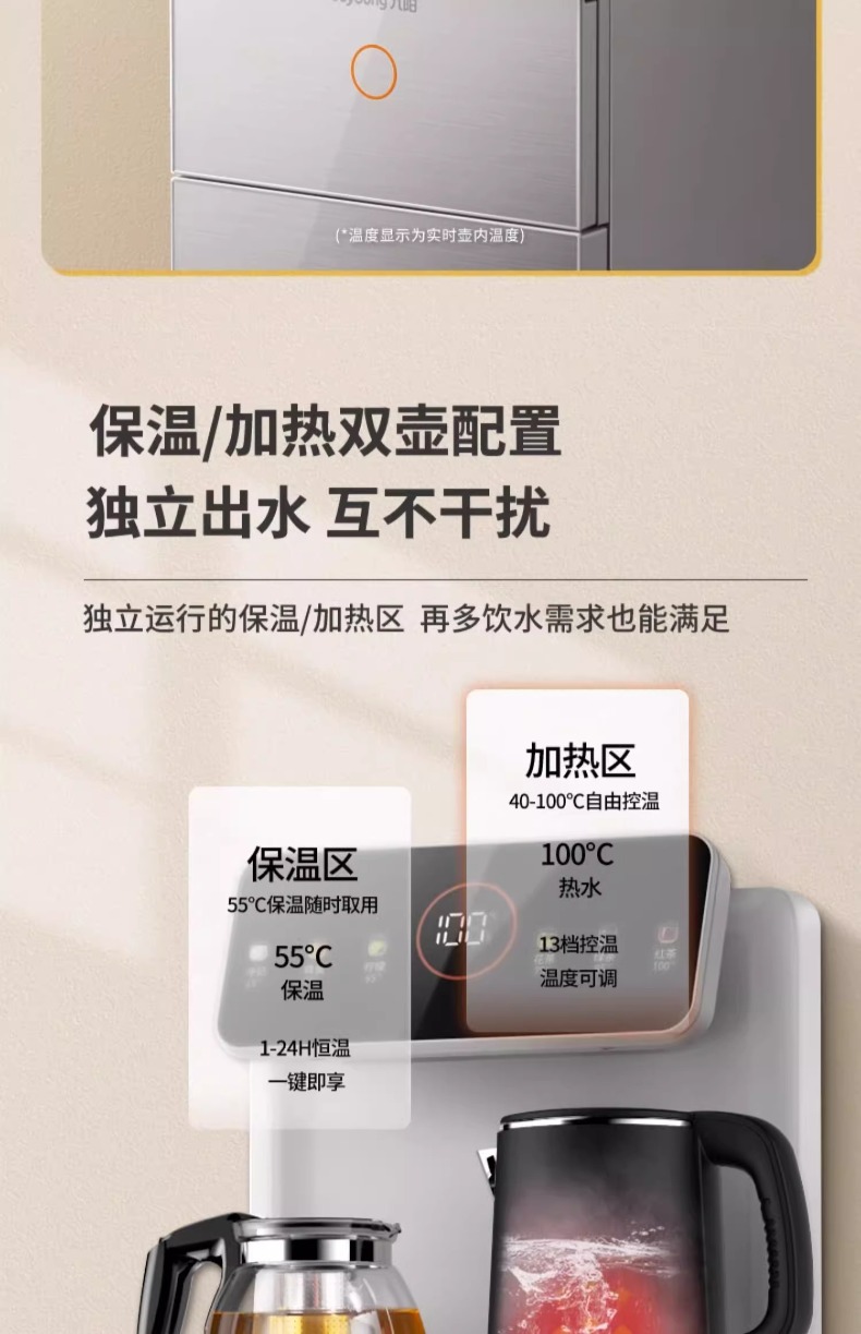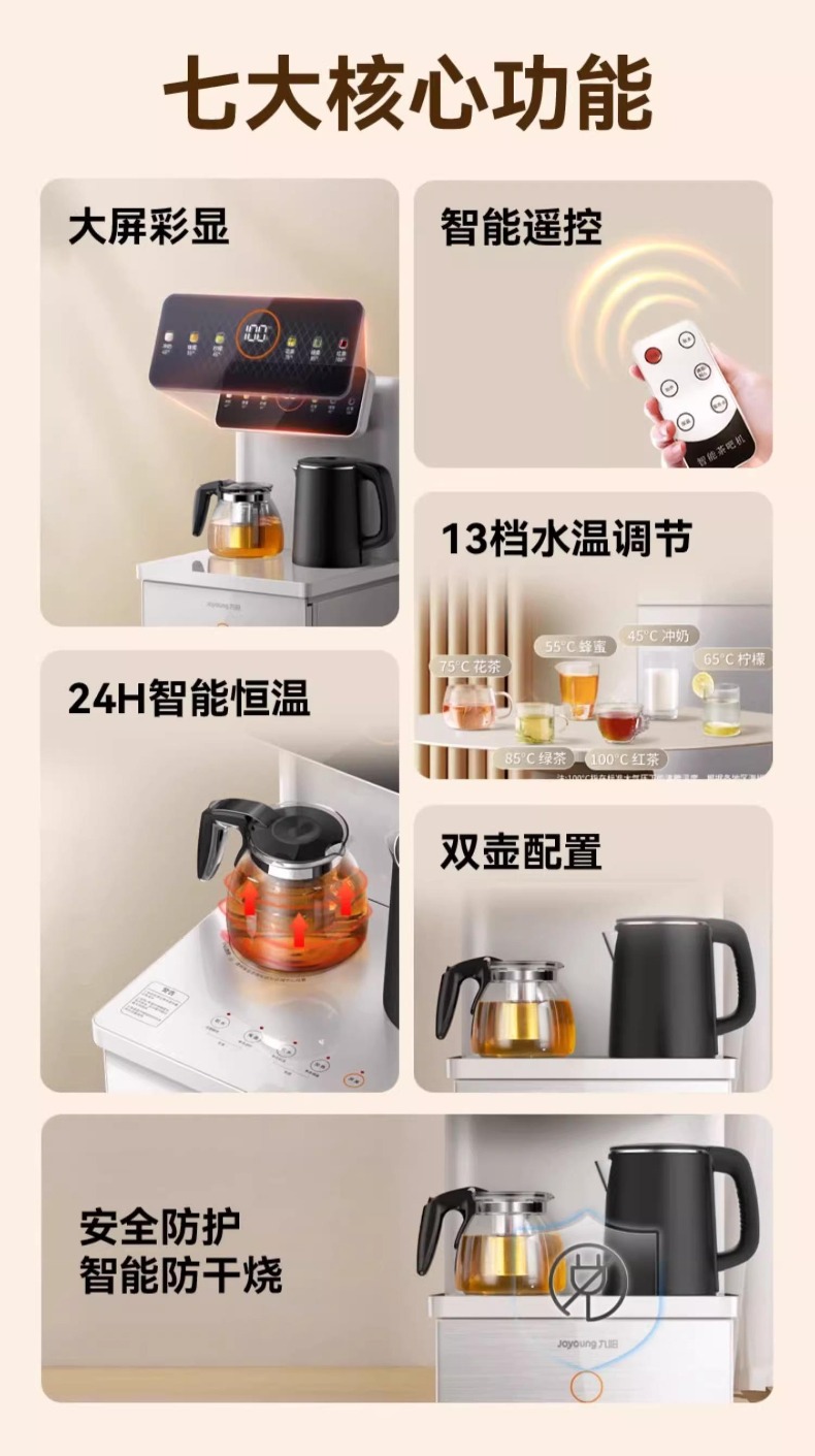 九阳智能茶吧机冷热两用彩显大屏下置式水桶双取水家用立式饮水机