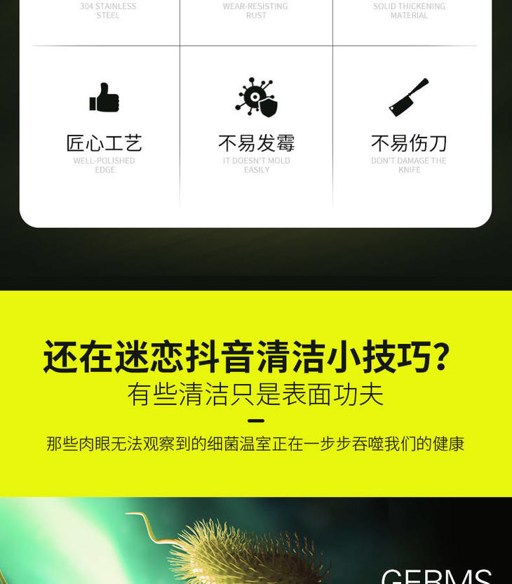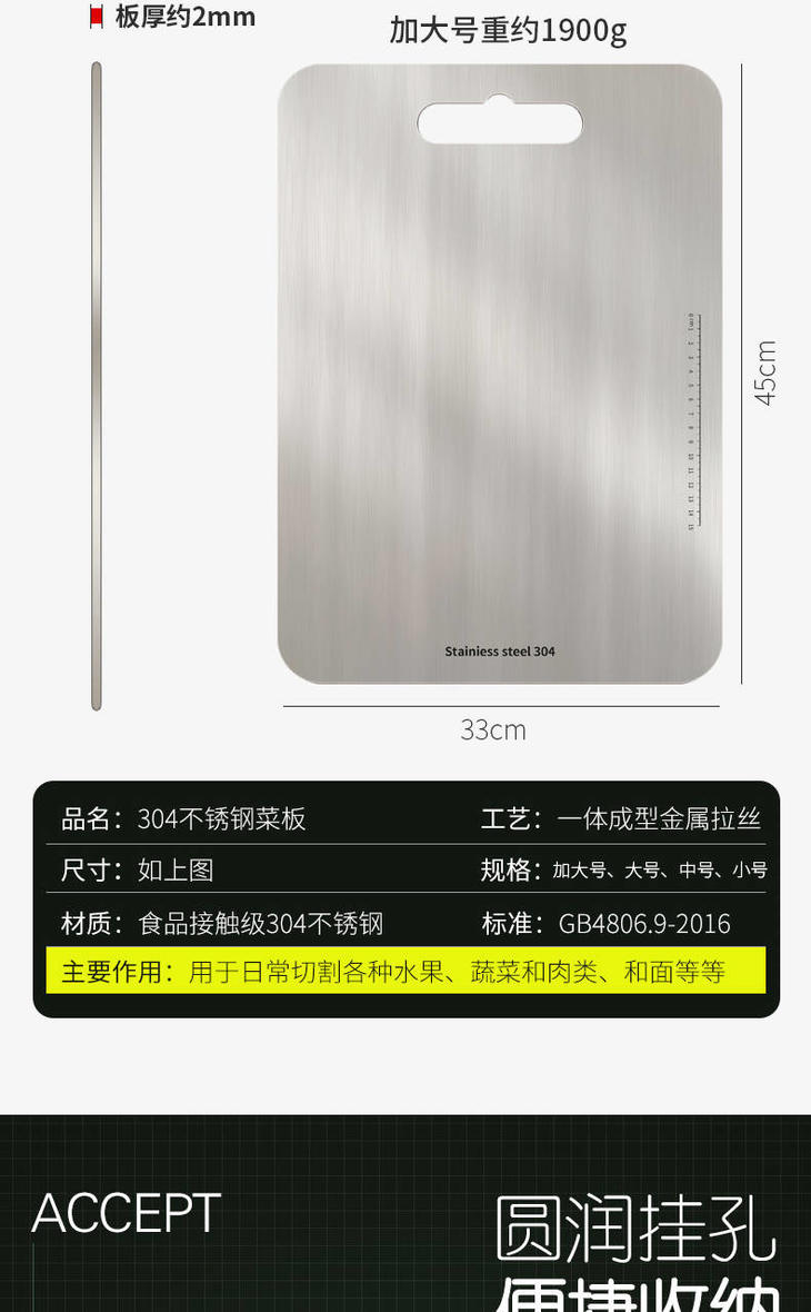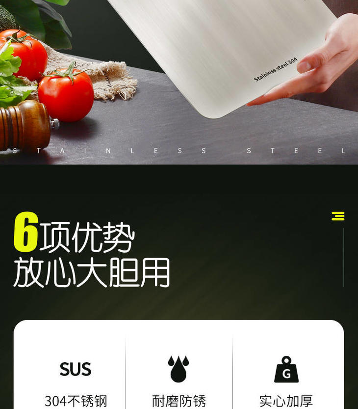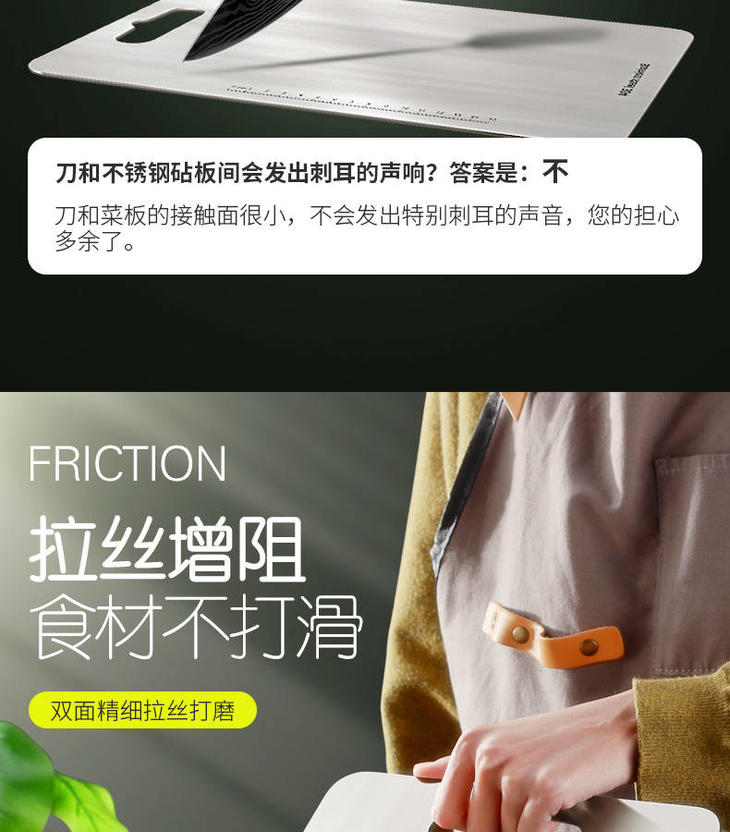 【一块不会发霉的菜板】德国304不锈钢砧板 防霉祛腥 健康易清洗 无刺音不伤刀