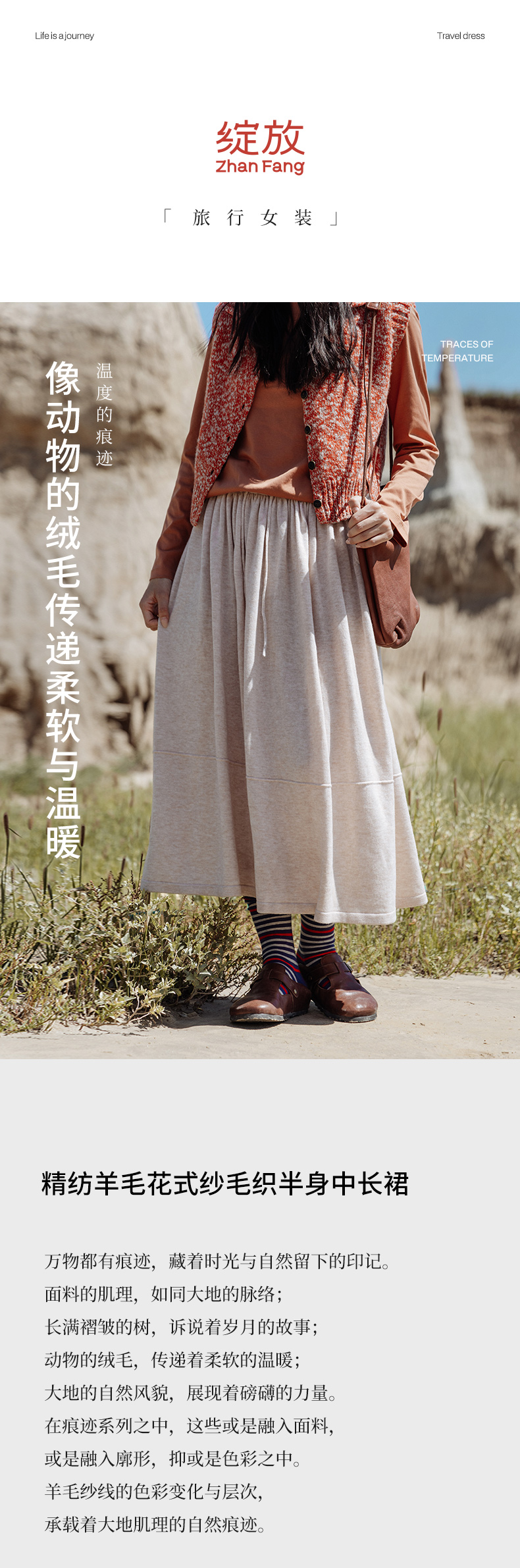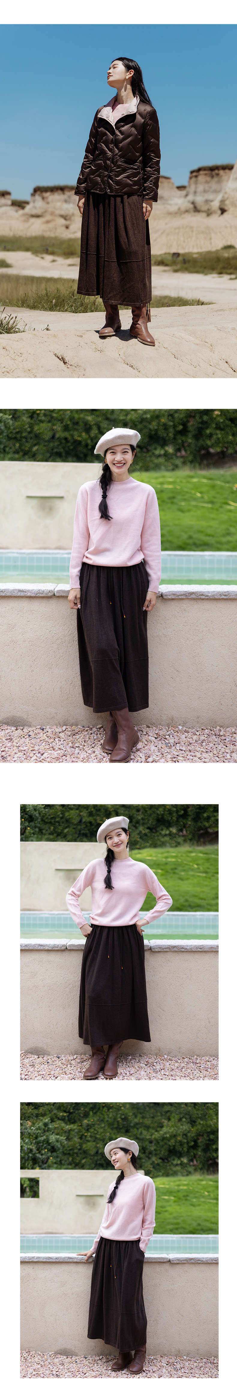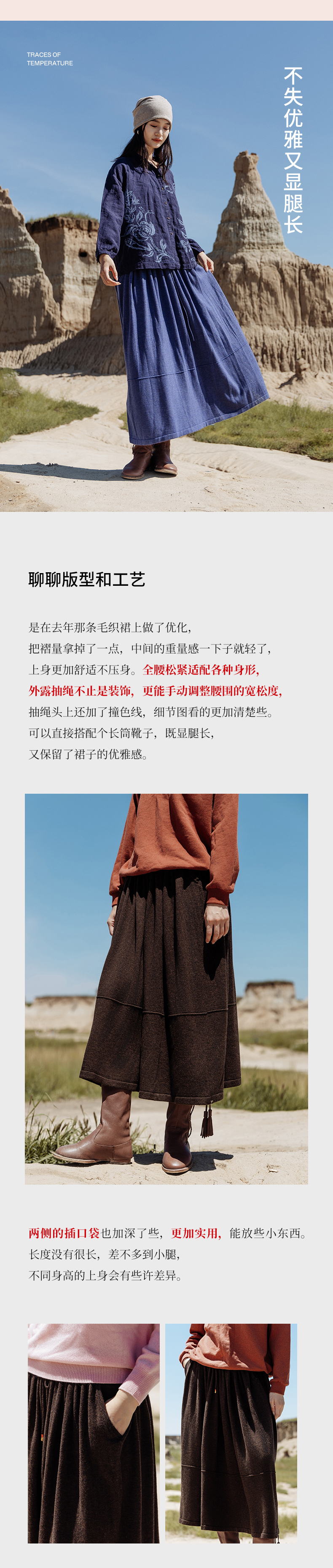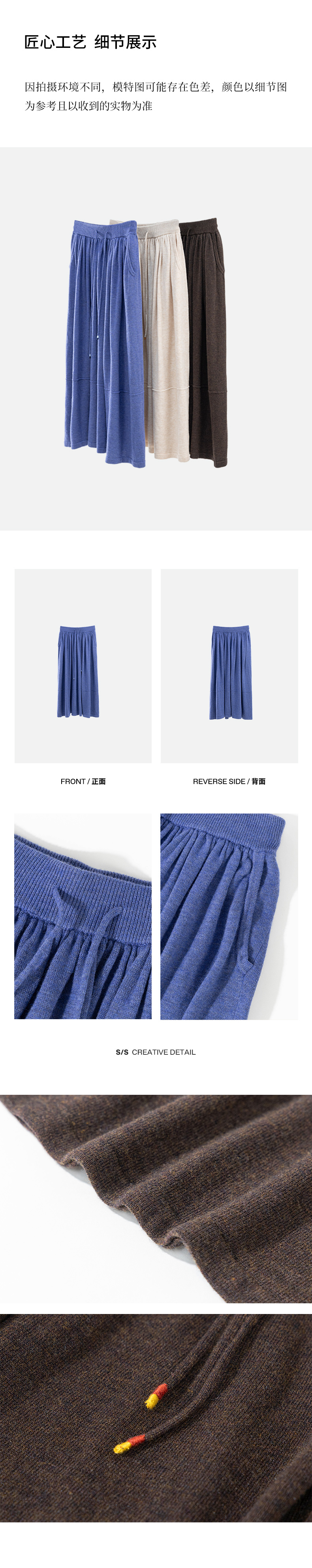 绽放574朵/精纺羊毛花式纱松紧腰抽褶毛织中长款半身裙秋冬新款